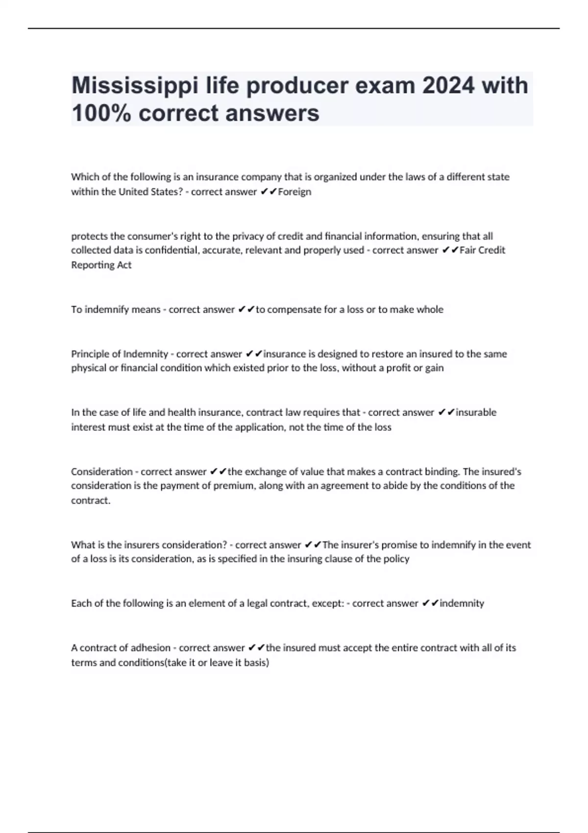 MISSISSIPPI INSURANCE BUNDLED EXAMS 2024/2025 WITH 100% ACCURATE SOLUTIONS