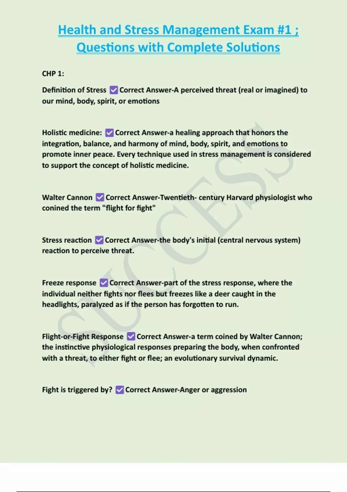 FULL BUNDLE-:STRESS MANAGEMENT EXAMS WITH COMPLETE SOLUTIONS