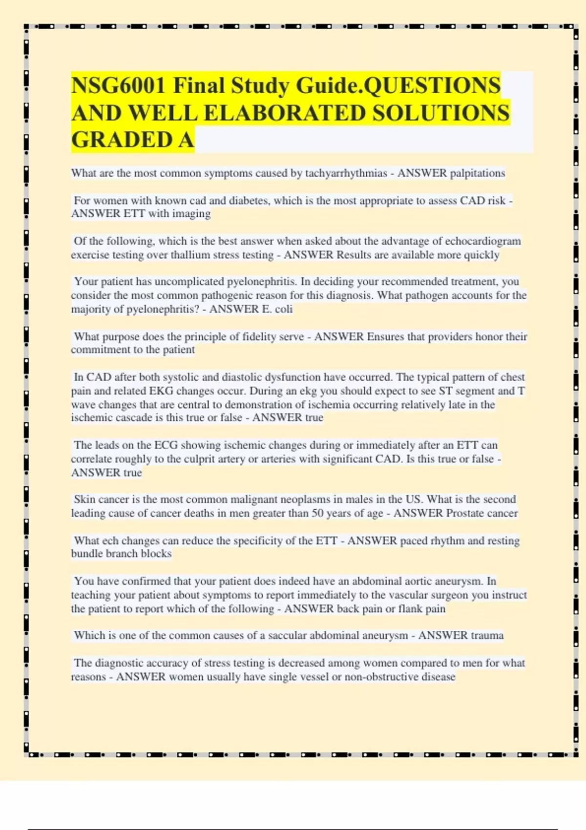 NSG 6001 WEEKLY QUIZES AND FINAL STUDY GUIDE WITH 100% VERIFIED SOLUTIONS