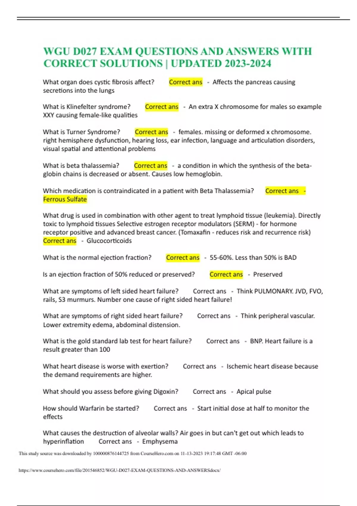 WGU D027 EXAM QUESTIONS AND ANSWERS WITH CORRECT SOLUTIONS | UPDATED