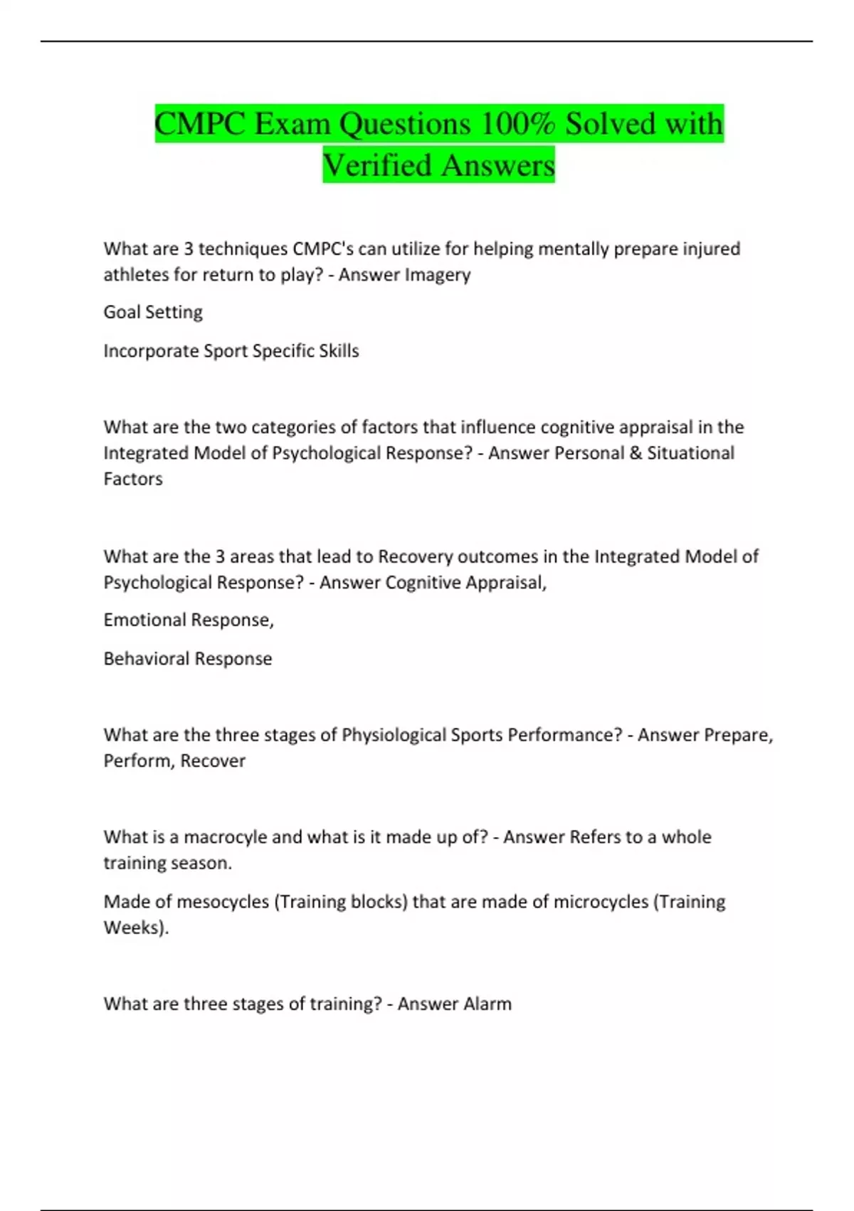 CMPC Exam Study Guide Questions 100% Solved with Verified Answers