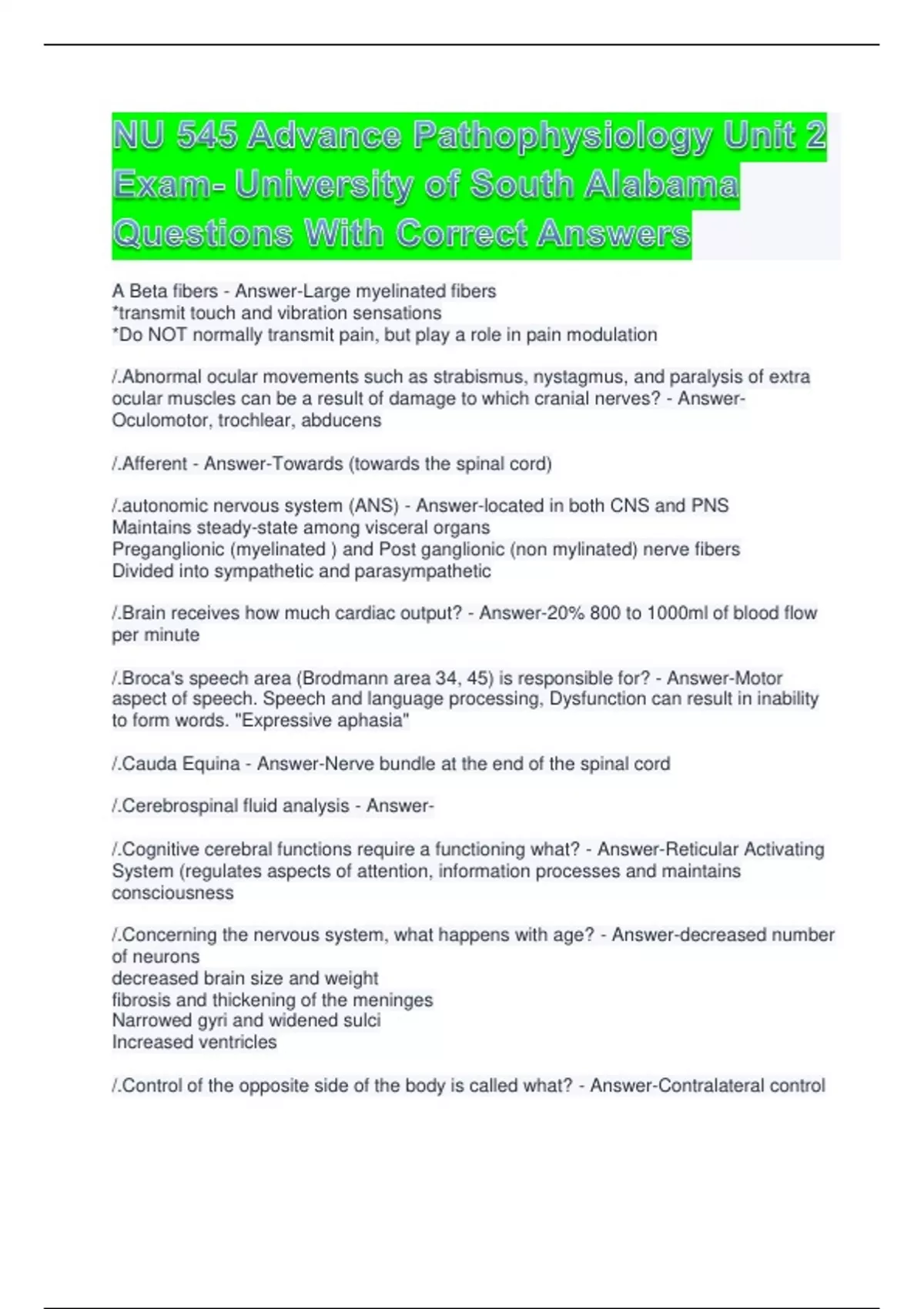 Exam (elaborations) NU 545 - Unit 5 Exam Questions And Collect Answers 2 Exam (elaborations) NU 545 Advance Pathophysiology Unit 2 Exam- University of South Alabama Questions With Correct Answers 3 Exam (elaborations) NU 545 Unit 1 Exam Questions With Verified Answers 4 Exam (elaborations) NU 545 Unit 2 Exam Questions With Detailed Answers 5 E