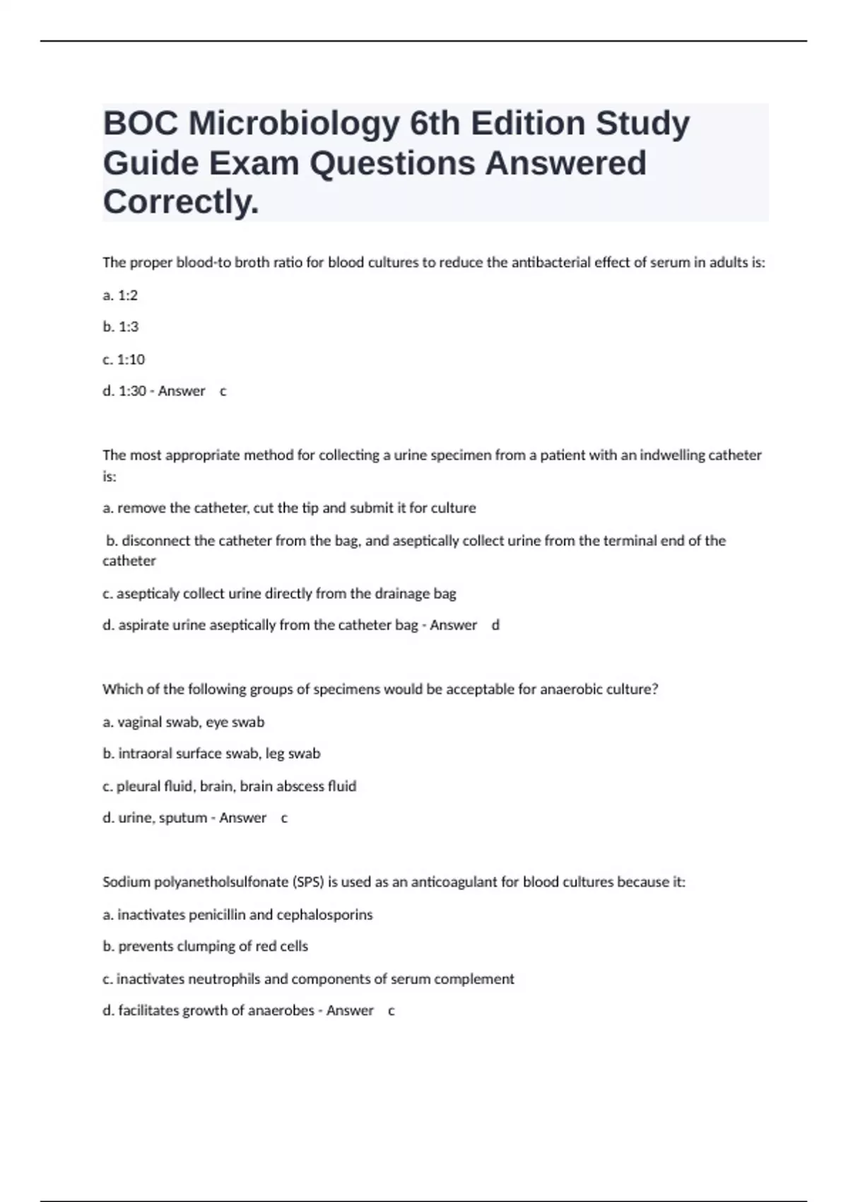 1 Exam (elaborations) Pathogenic Microbiology Test 4 Questions And Verified Correct Answers 2 Exam (elaborations) BOC Study Guide 5th edition (Clinical Laboratory) Questions With Solved Solutions. 3 Exam (elaborations) BOC Exam Review – Micro Pro Test Questions Fully Answered. 4 Exam (elaborations) BOC Urinalysis final, BOC Molecular Pathology F