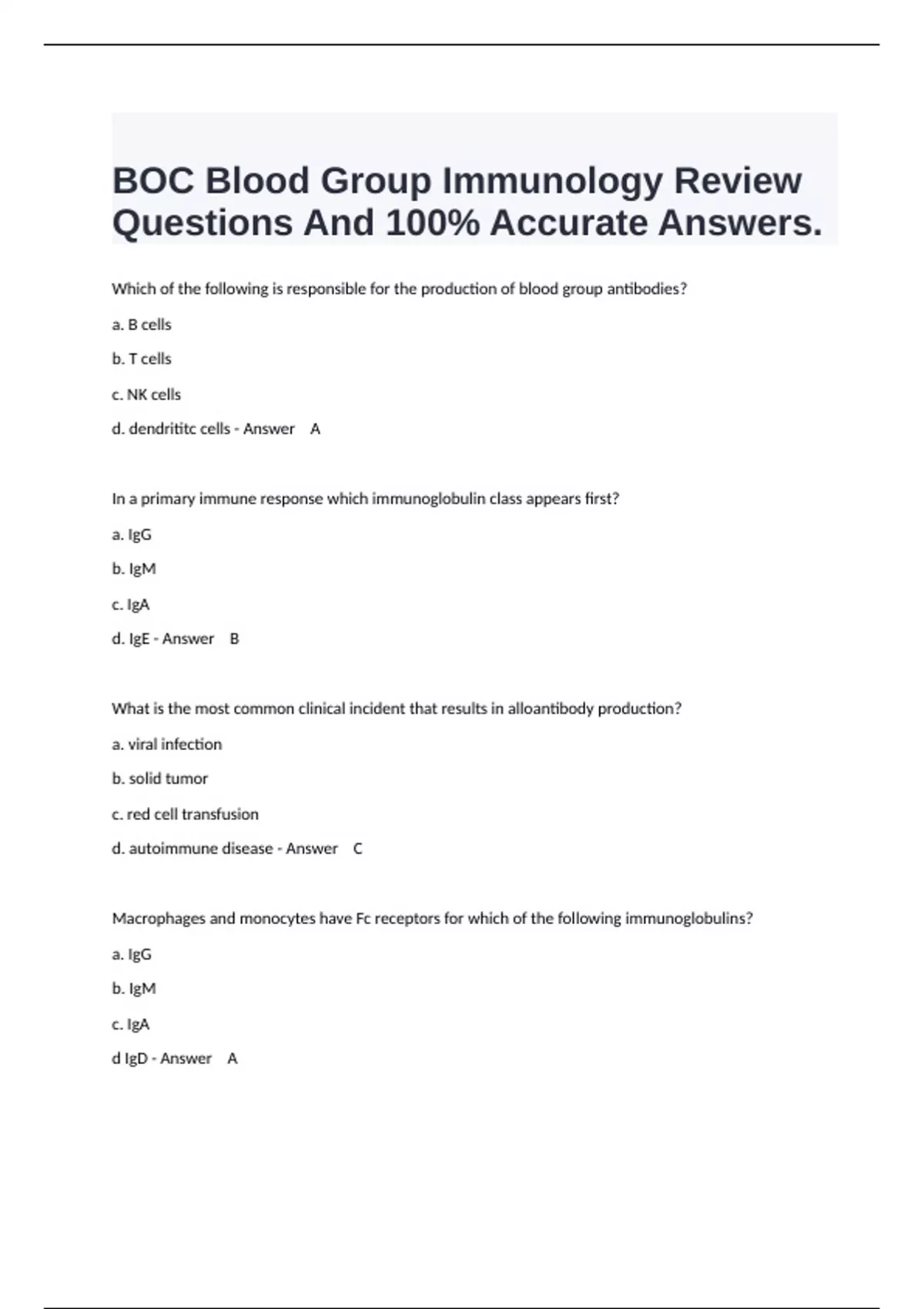 Boc serology immunology Compilled Study Guides Solved Correctly By Experts () Package Deal !!
