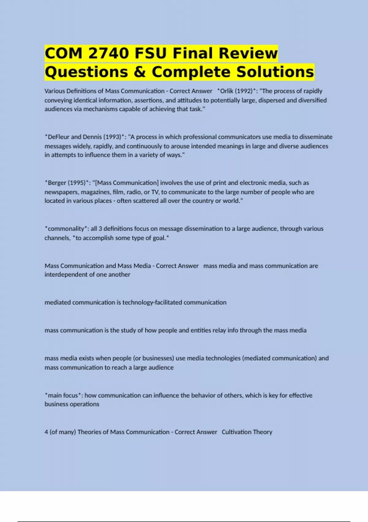 COM2740 Exam 1 Questions With Latest Solutions ,COM2740 Exam 1 Shawn Davison ( Study Guide) Questions & Complete Solutions , PSYCH 2740 Midterm 1 Answered & Graded,COM 2740 Exam 1 Detailed Questions & Accurate Answers,COM 2740 Exam 2 Latest Questions & Correct Answers,COM2740 Final Exam Review Answered & Graded,COM2740 Final Exam With Solutions