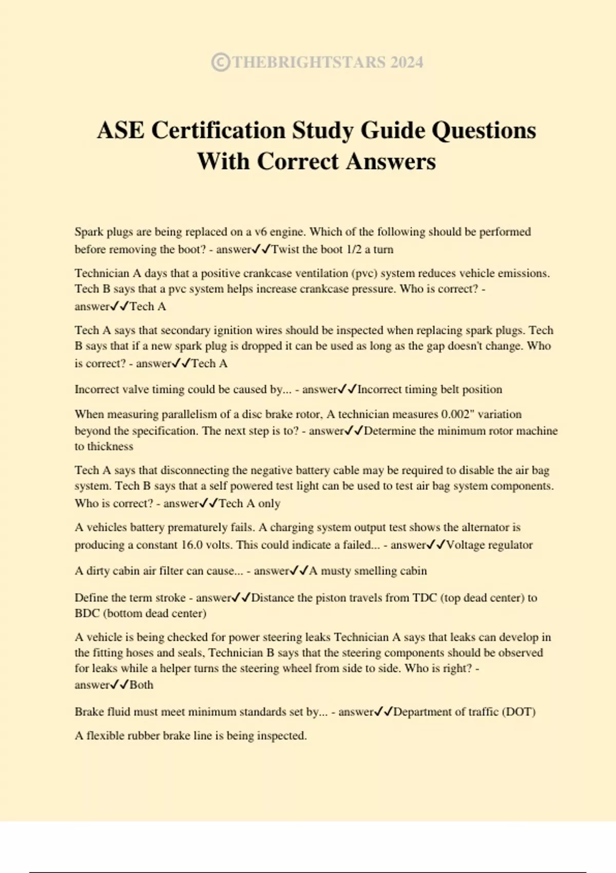 ASE G1 Maintenance & Lt. Repair #1 Exam Questions With Correct Answers