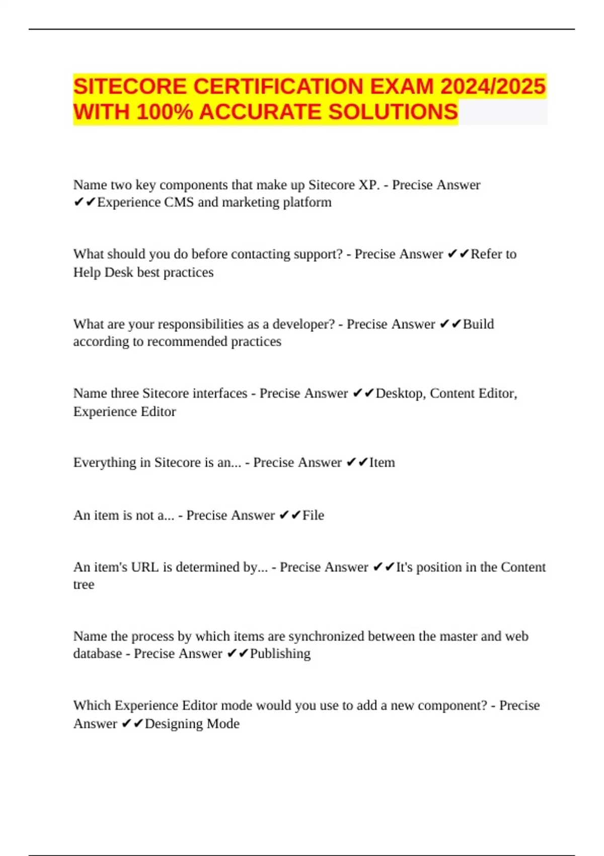 SITECORE BUNDLED EXAMS 2024/2025 WITH 100% ACCURATE SOLUTIONS