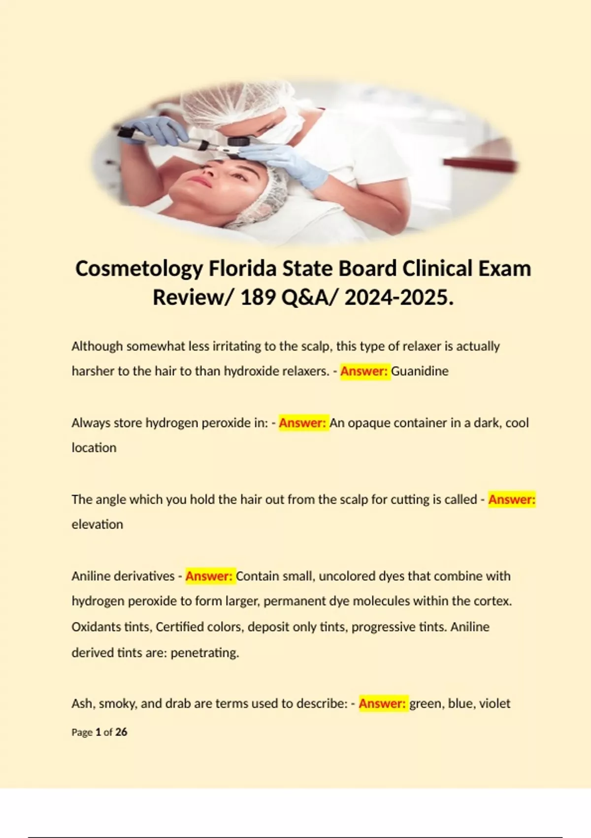 1 Exam (elaborations) Cosmetology Florida State Board Clinical Exam Review/ 189 Q&A/ . 2 Exam (elaborations) Cosmetology State Board Florida/ 200 Qs with Certified Ans/ . An overactive sebaceous gland would produce: - Answer: oil The technical name for a blackhead is: - Answer: Come done Milia is more commonly referred to as: - A