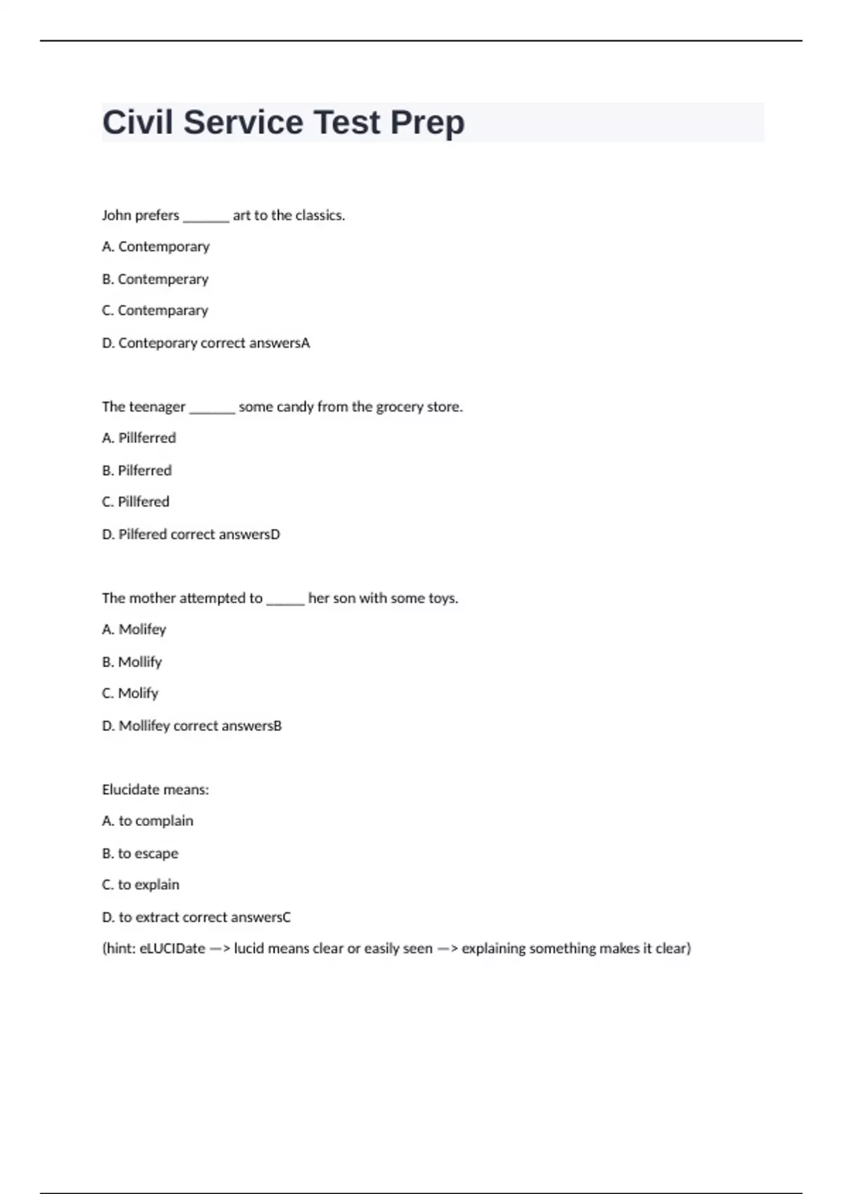 Civil Service Exam: Vocabulary 2024 with 100% complete solutions