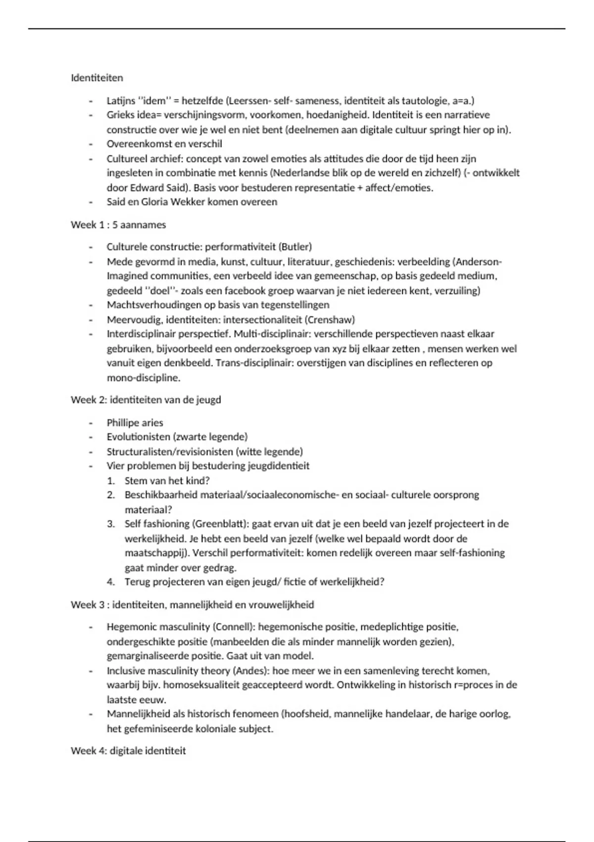 Historische en eigentijdse verbeelding van identiteit- complete samenvatting van de begrippen