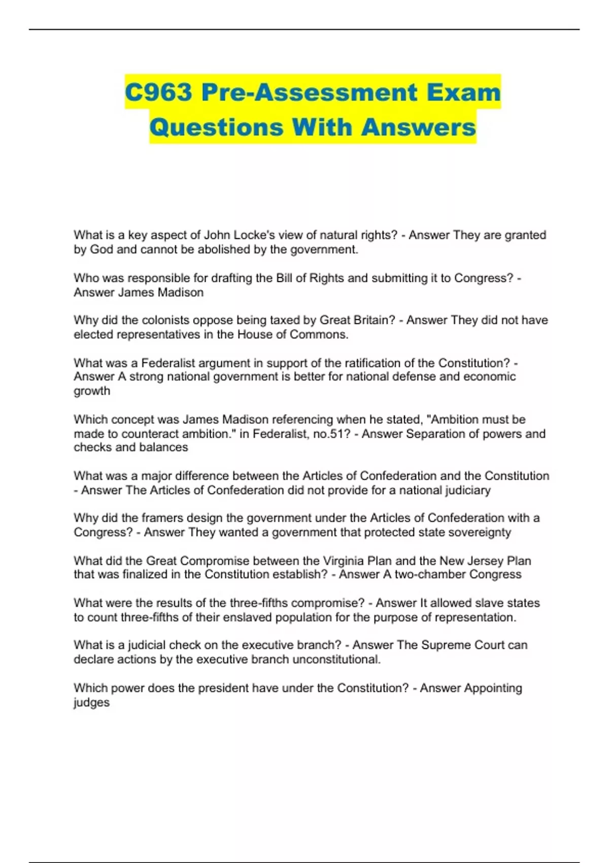 Pre-Assessment Packaged Exams With Questions And Correct Answers