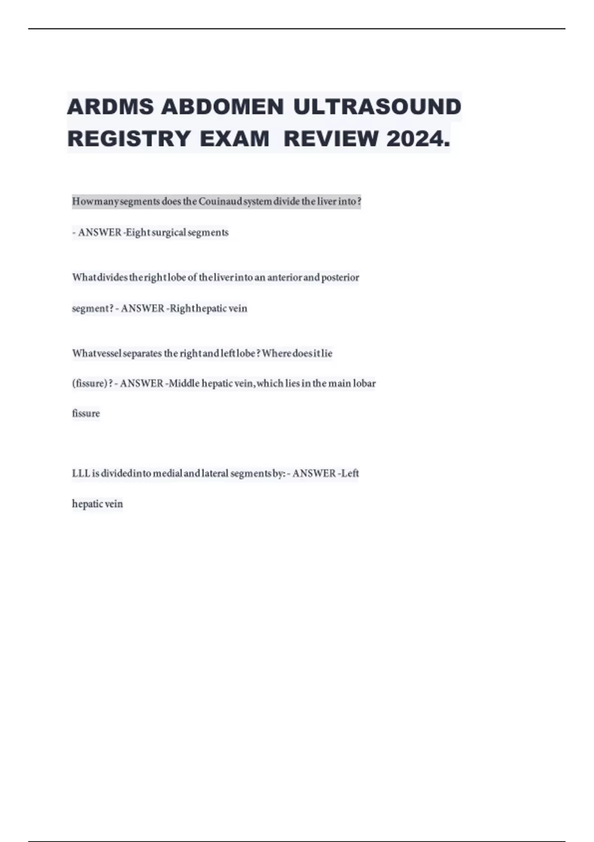 ARDMS ABDOMEN ULTRASOUND REGISTRY EXAM REVIEW 2024.