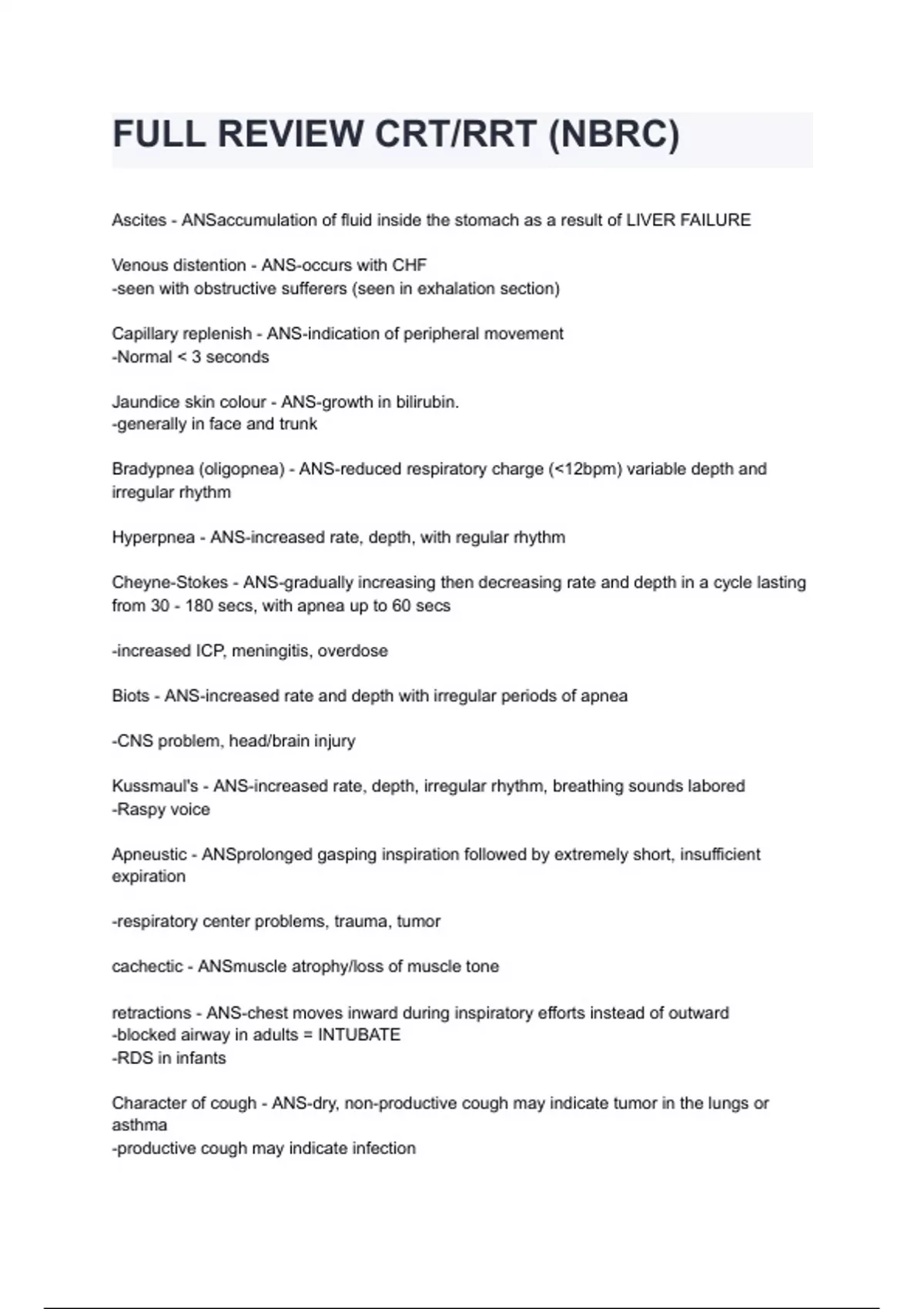 NBRC TMC/CRT/RRT EXAM 2024/2025 LATEST QUESTIONS AND CORRECT ANSWERS |AGRADE (ALL BUNDLED HERE!!!)