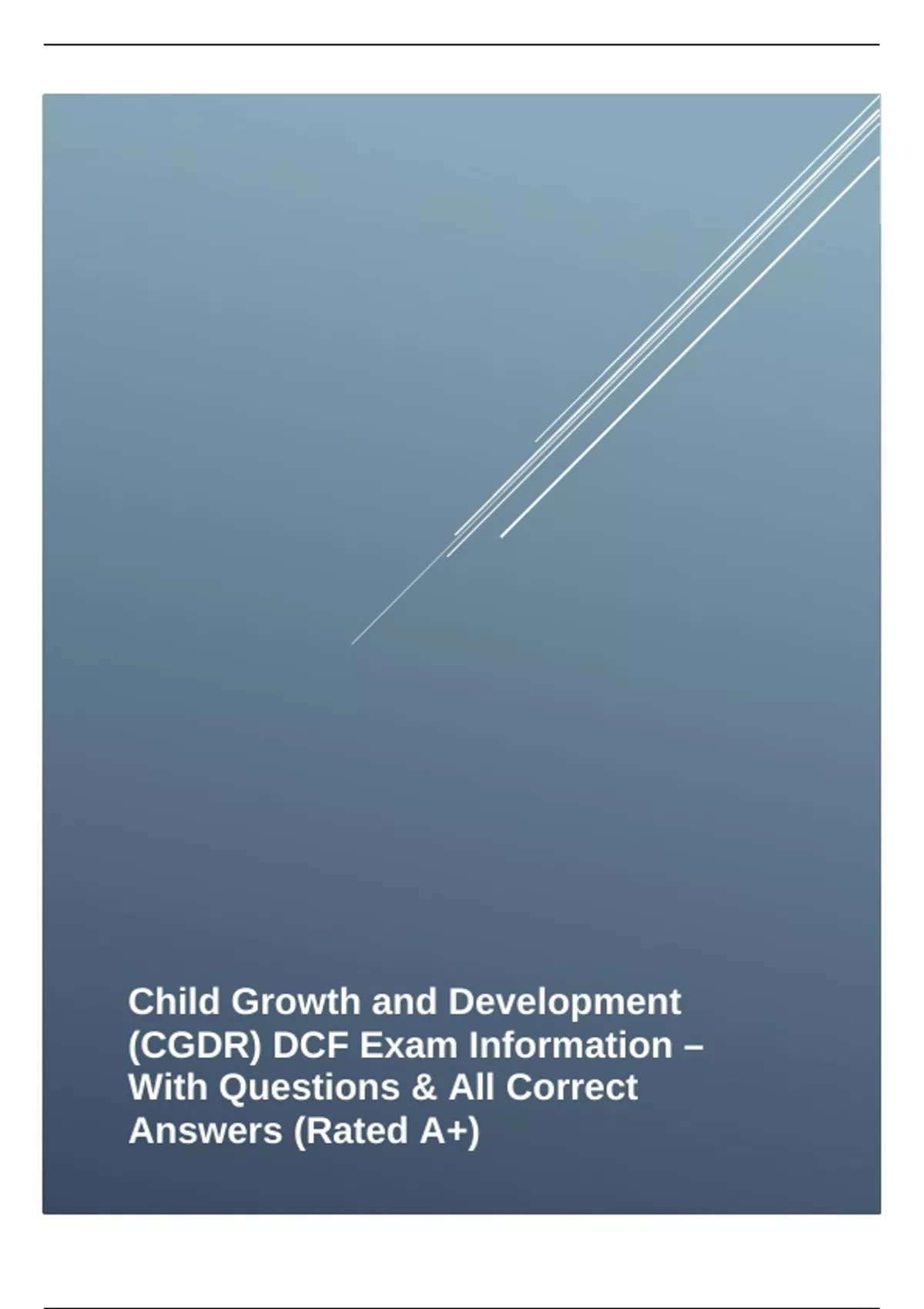 Child Growth and Development (CGDR) DCF Exam Bundle || With Complete Questions & All Correct Answers (Rated A+)