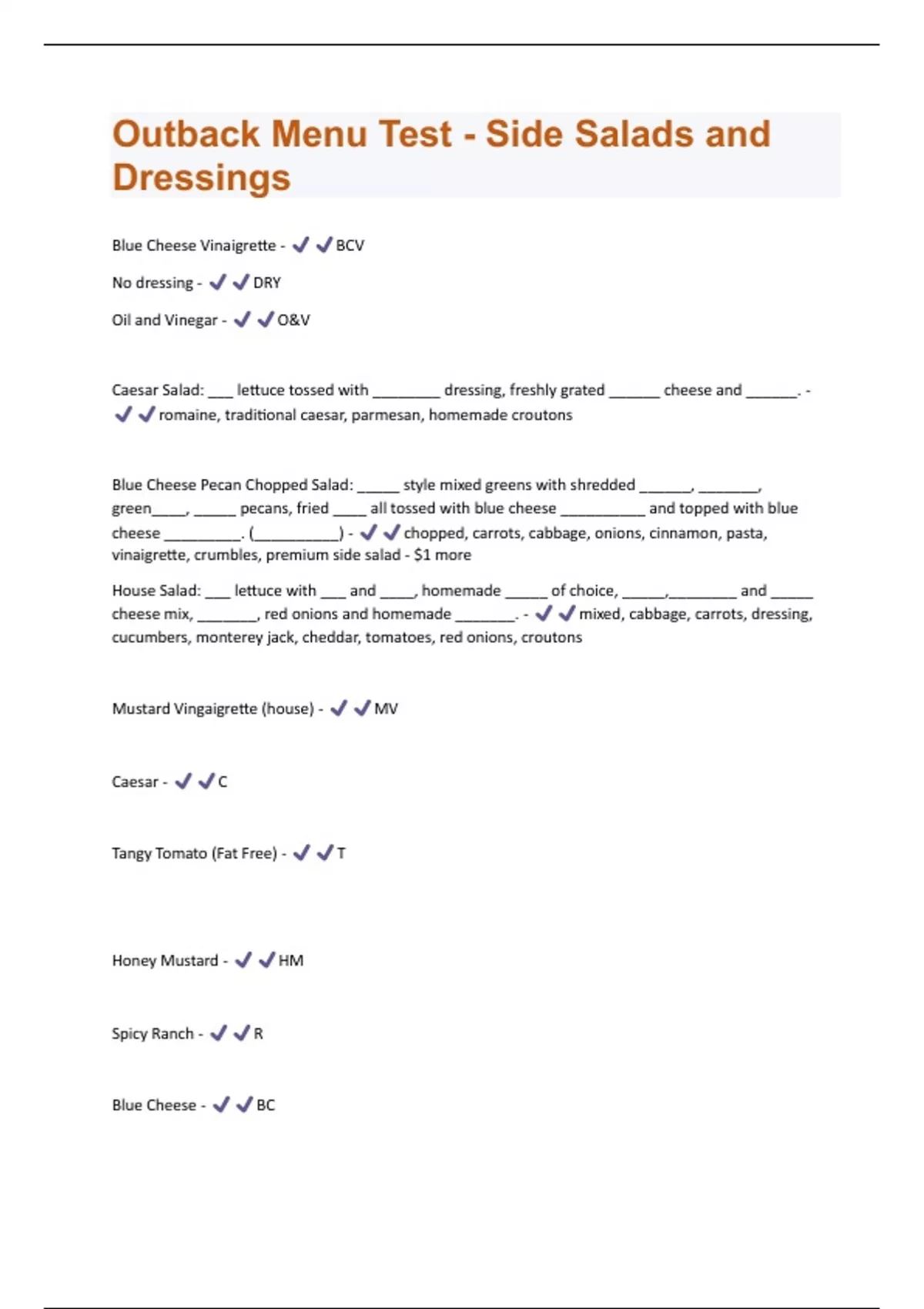 Outback Menu Test - Side Salads and Dressings Updated 2024/2025 Verified 100%