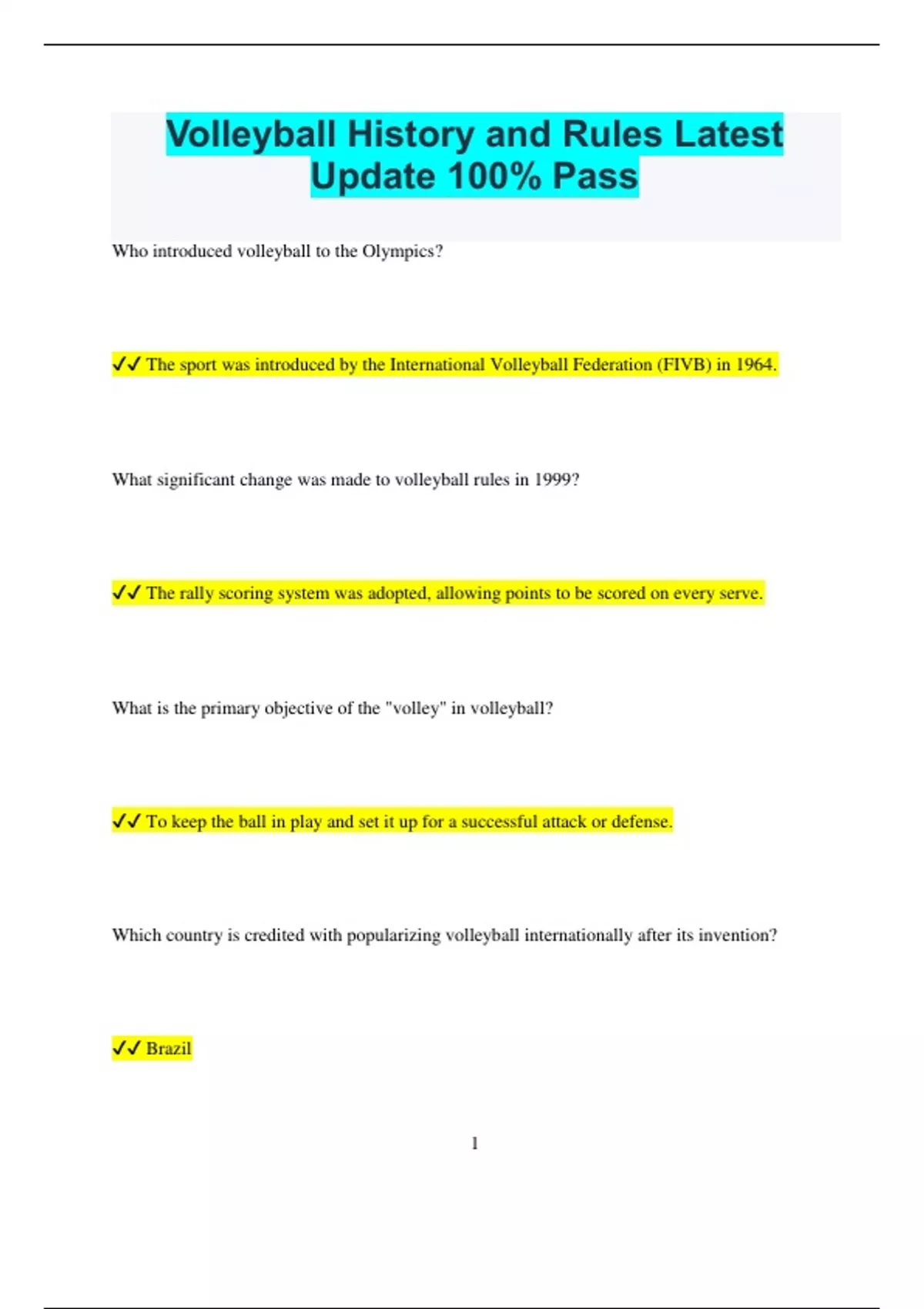 Volleyball Bundled Exams Questions and Answers Multiple Versions Latest Updates (2024/2025) (Complete, Accurate, and Verified)