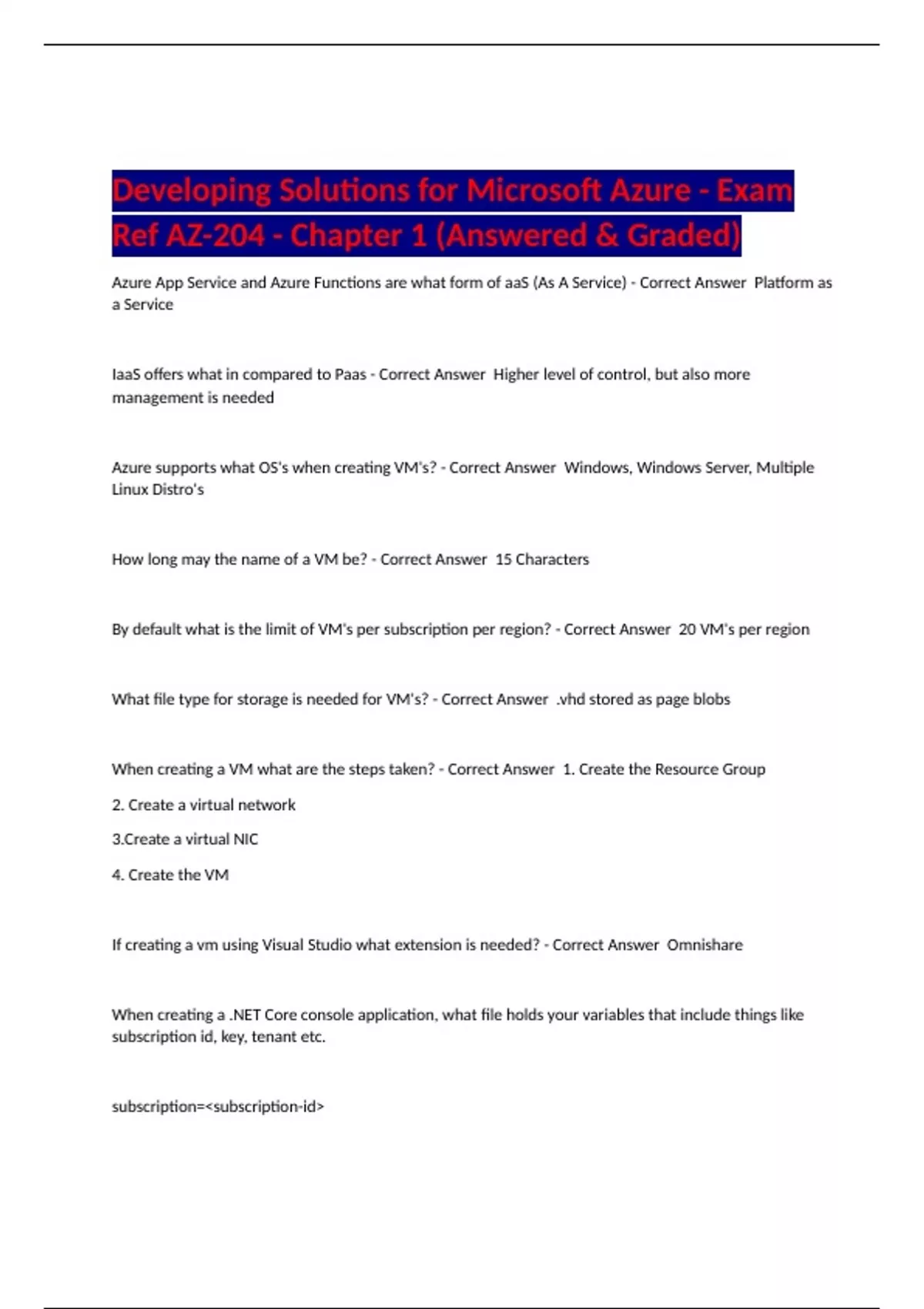 Developing Solutions for Microsoft Azure - Exam Ref AZ-204 Chapter 1 to 5 - D306 Azure Developer Associate with complete solution