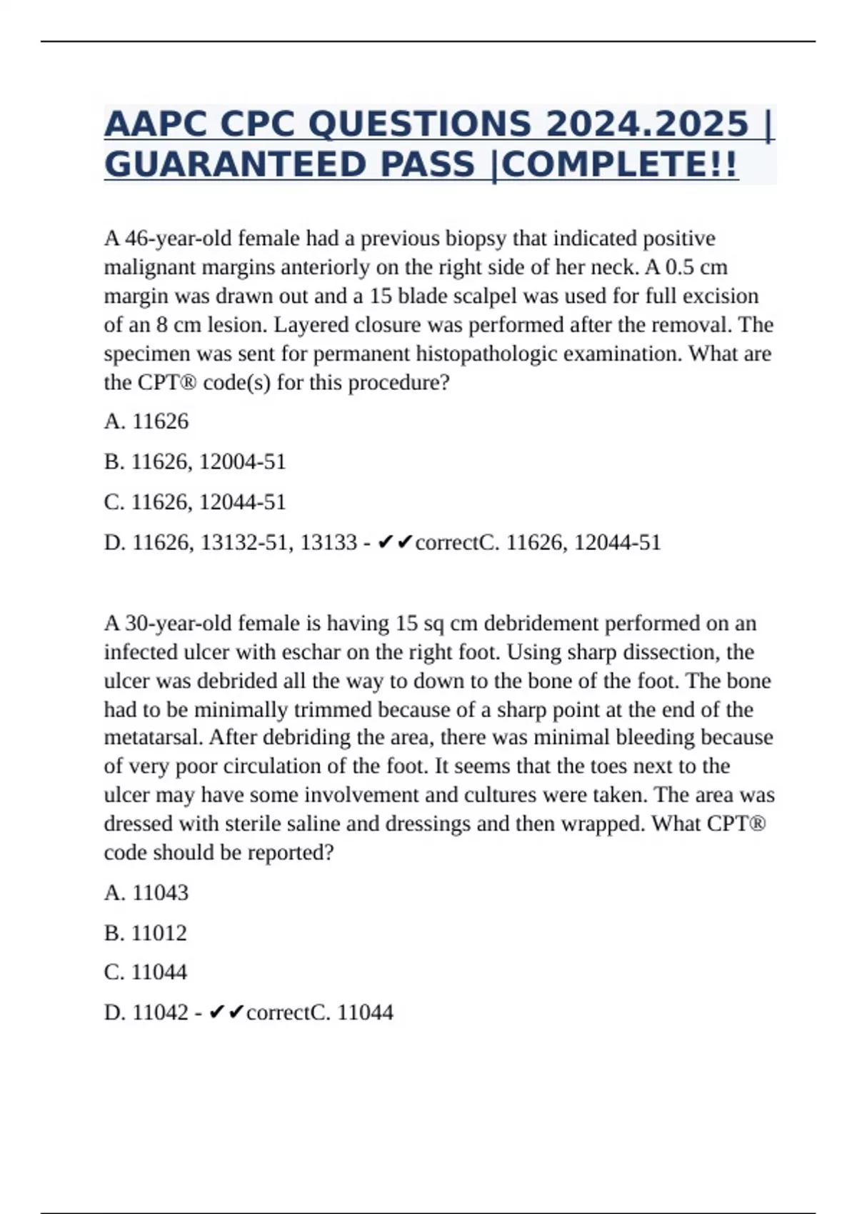 AAPC CPC EXAM PREP QUESTIONS |GUARANTEED PAS AAPC CPC QUESTIONS 2024.2025 |GUARANTEED PASS |COMPLETE!! AAPC FINAL TEST |GUARANTEED PASS!! AAPC EXAM SET |GUARANTEED PASS!! AAPC OFFICIAL CPC CERTIFICATION EXAM GUIDE 2024/2025 |GUARANTEED PASS CPC 2024.2025 EXAM |GUARANTEED PASS!! AAPC CPC FINAL EXAM QUESTIONS |GUARANTEED PASS!!