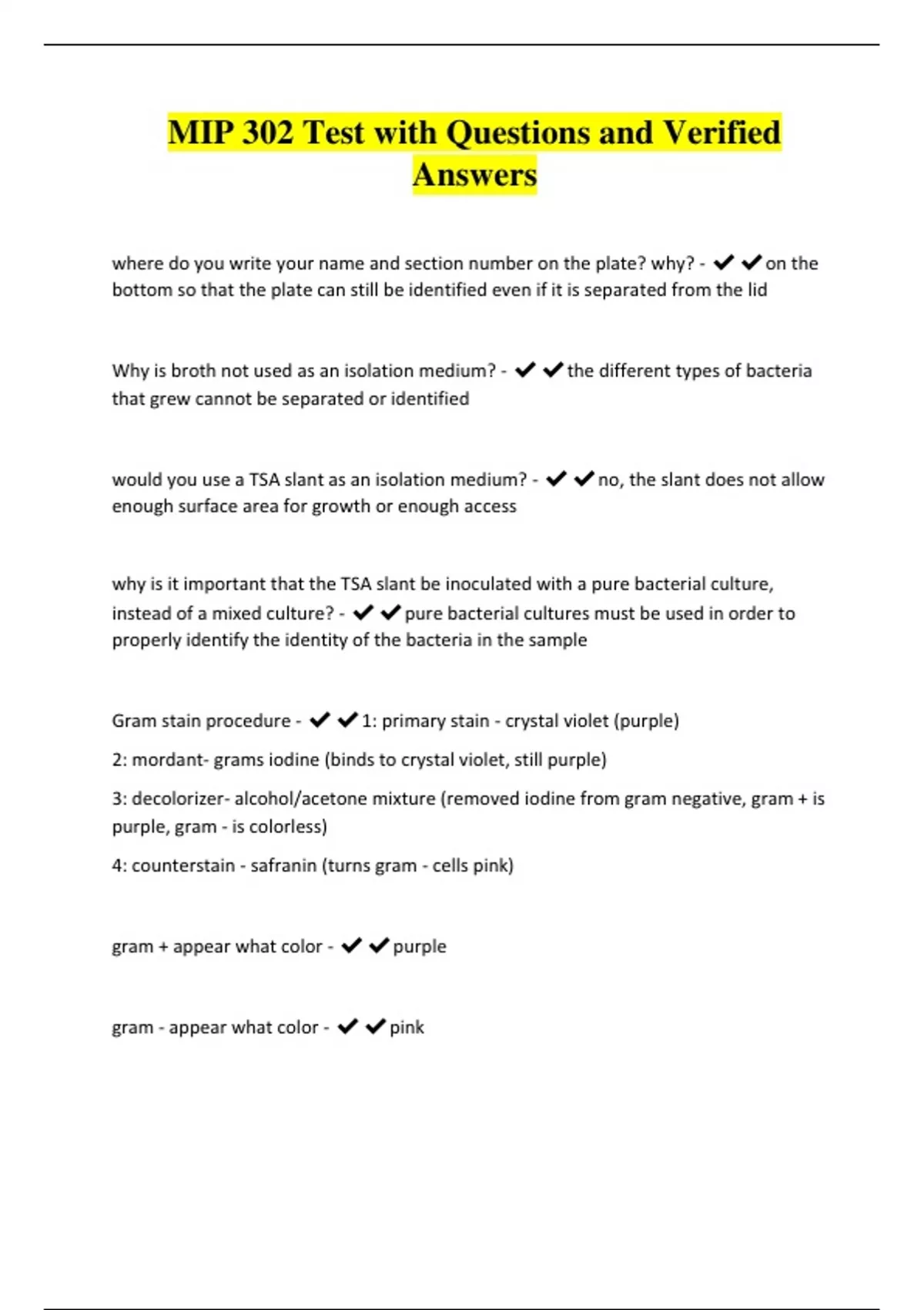 MIP 302 Final Exam Prep Questions with Verified Answers
