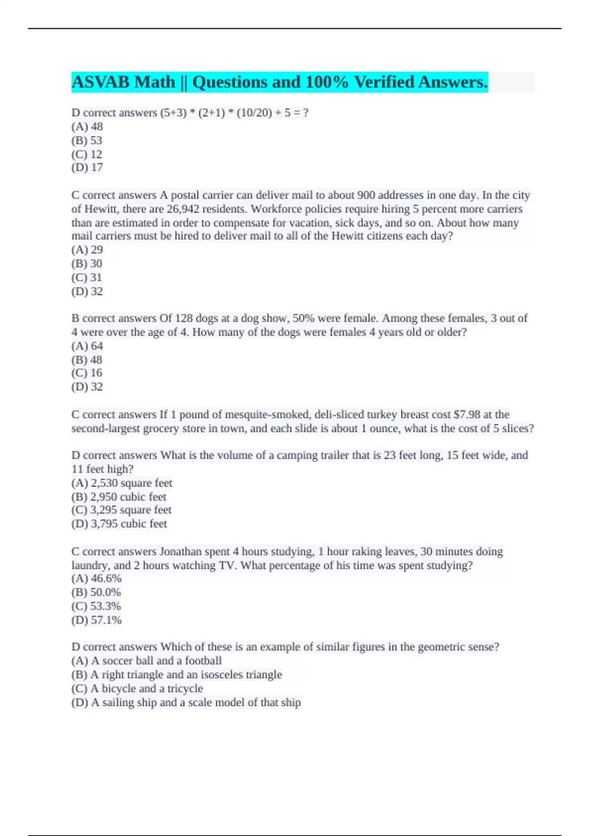 ASVAB Math || Questions and 100% Verified Answers. Word Knowledge for ASVAB 2023/2024 || A+ Verified Solutions. Word Knowledge ASVAB || with 100% Errorless Solutions. PICAT/ASVAB QUESTIONS || WITH A+ GUARANTEED SOLUTIONS. ASVAB!!! || with 100% Correct Answers. ASVAB, Real asvab test!!! || with 100% Verified Solutions. ASVAB Practice Test 1 Mathemat