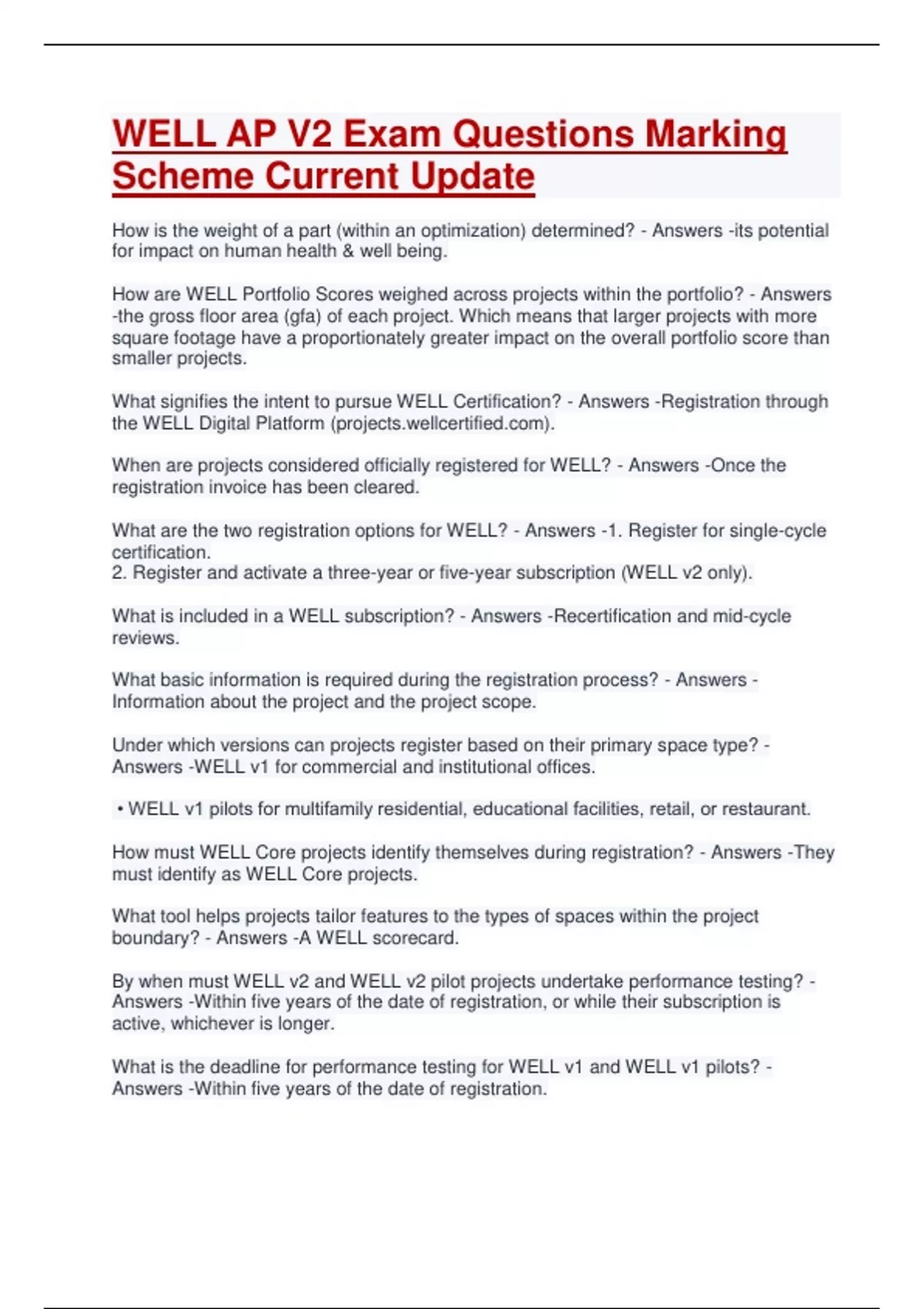 1 Exam (elaborations) WELL AP v EXAM Questions Marking Scheme Current Update 2 Exam (elaborations) WELL AP V2 - Water Exam Questions Marking Scheme Current Update (Verified A+ Pass) 3 Exam (elaborations) Well AP v2 EXAM Questions Marking Scheme Current Update 4 Exam (elaborations) WELL AP V2 EXAM QUESTIONS AND CORRECT SOLUTIONS NEW UP
