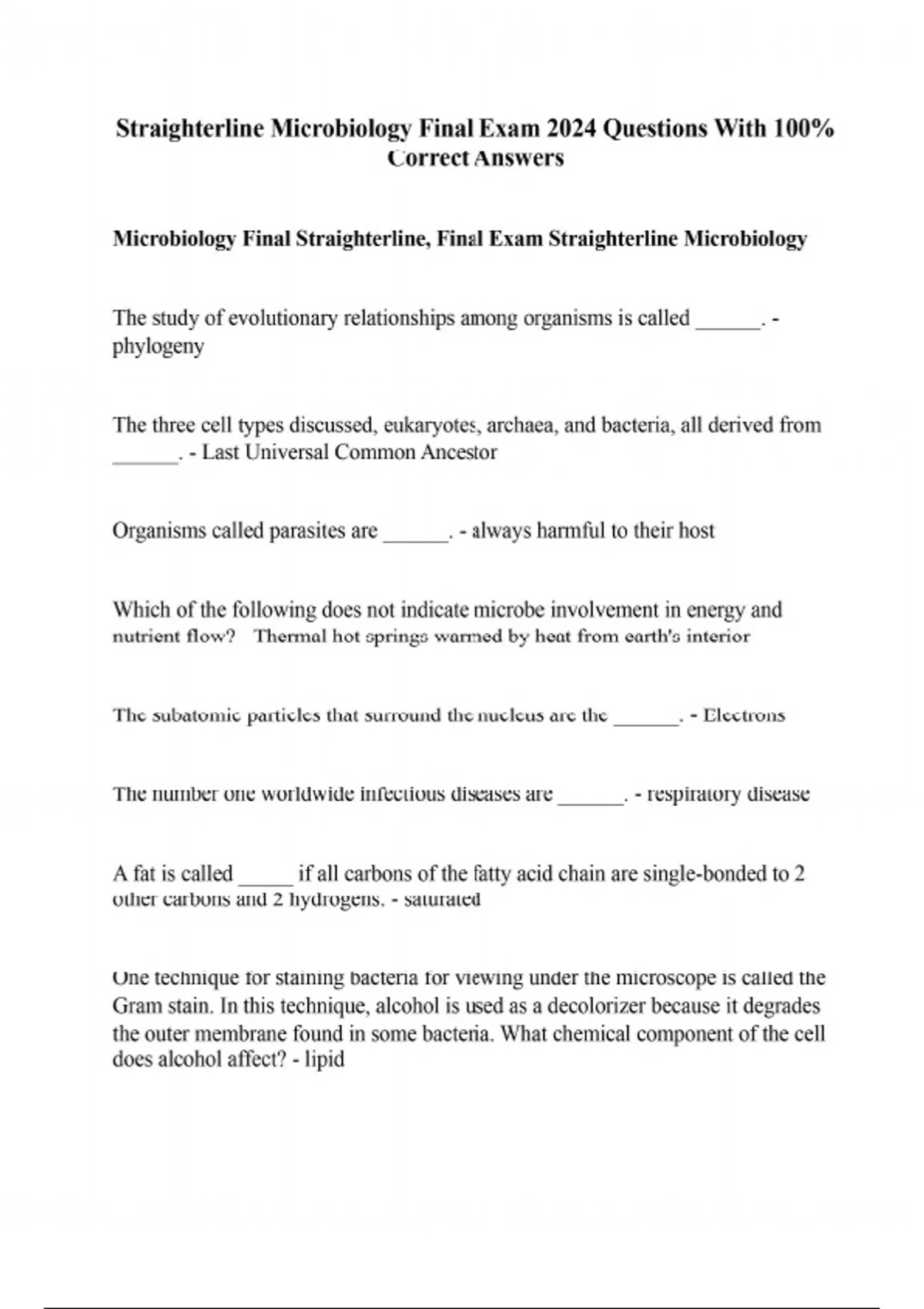BIO 250 Final Exam (Microbiology) and A & P 2 Straighterline Final Exam and BIO250L Lab 1 - 4 Reports