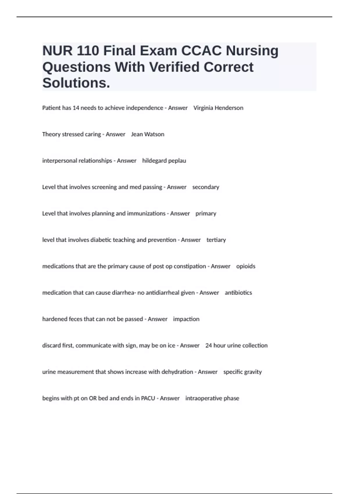 1 Exam (elaborations) Nursing 110 Stimulator Exam 1 Questions 100% Fully Solved. 2 Exam (elaborations) Nursing 110 Midterm Chapters 1-6 Questions Fully Answered Guaranteed Pass. 3 Exam (elaborations) Nursing 110 Exam 3 Practice Questions With All Correct Answers. 4 Exam (elaborations) Nursing 110 Exam 1Test Questions Well Answered. 5 Exam (elab
