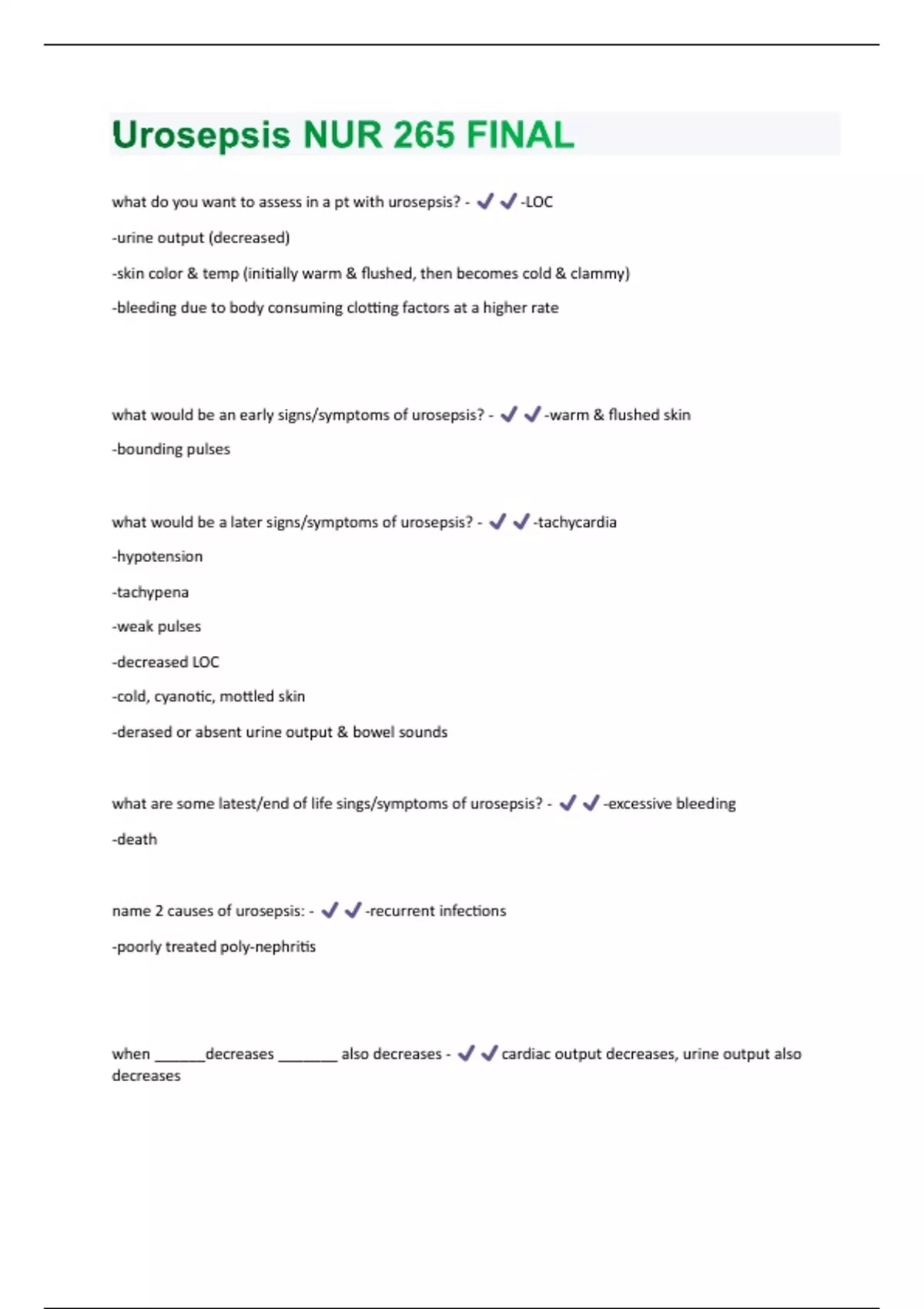 Urosepsis NUR 265 FINAL Questions And Answers Rated A+ New Update Assured Satisfaction