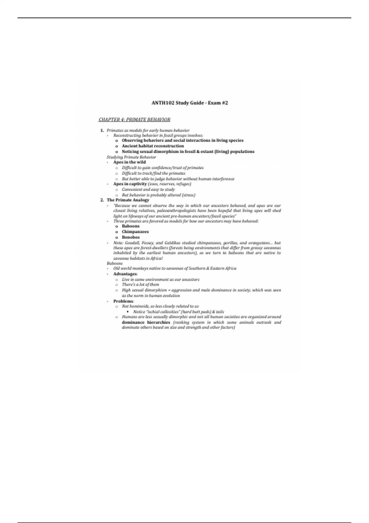 This is an essential study guide that contains key notes for Anth 102. *At a price that's fair enough!!! , Enjoy!!