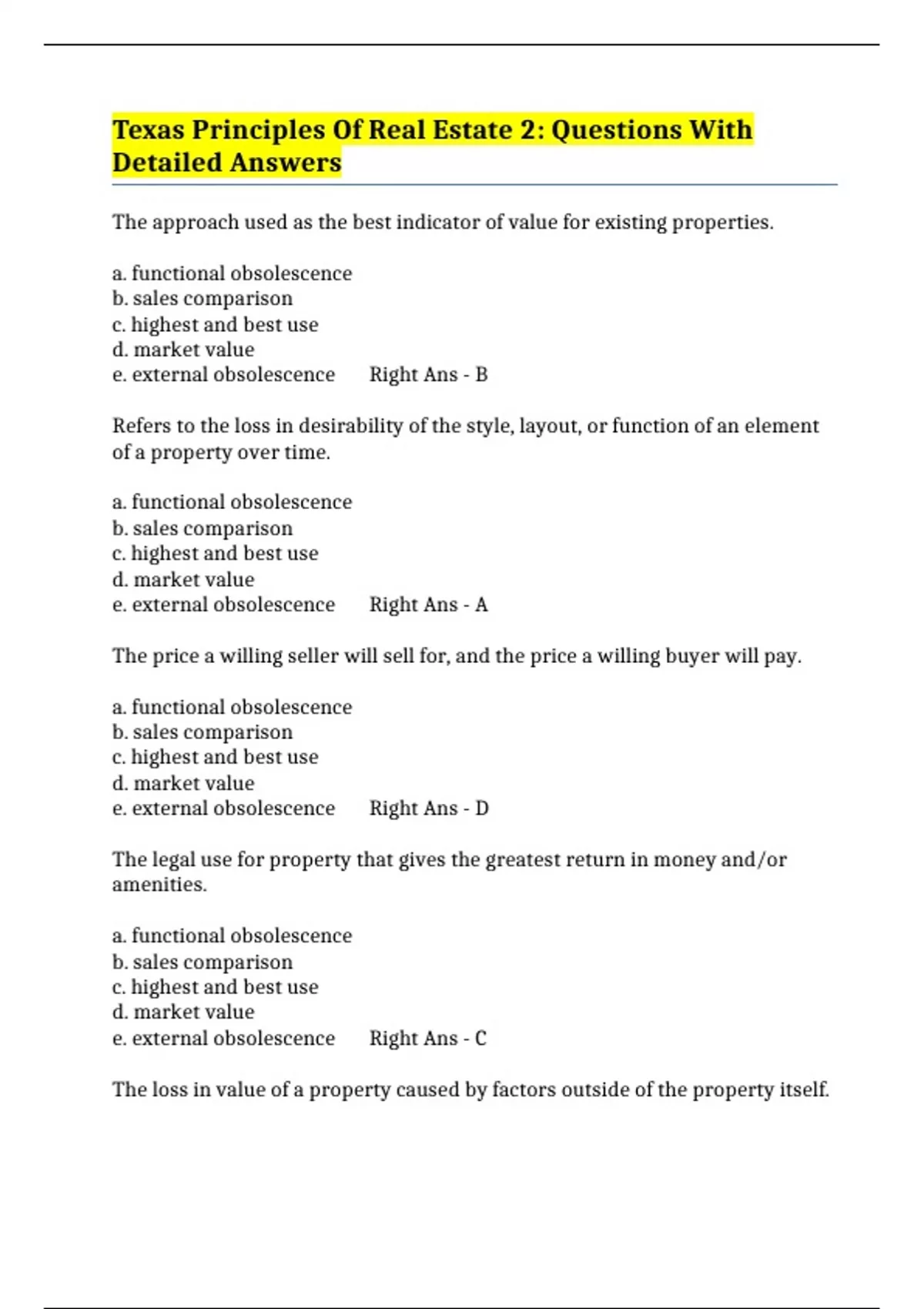 BUNDLE::- TEXAS PRINCIPLES OF REAL ESTATE II EXAMS