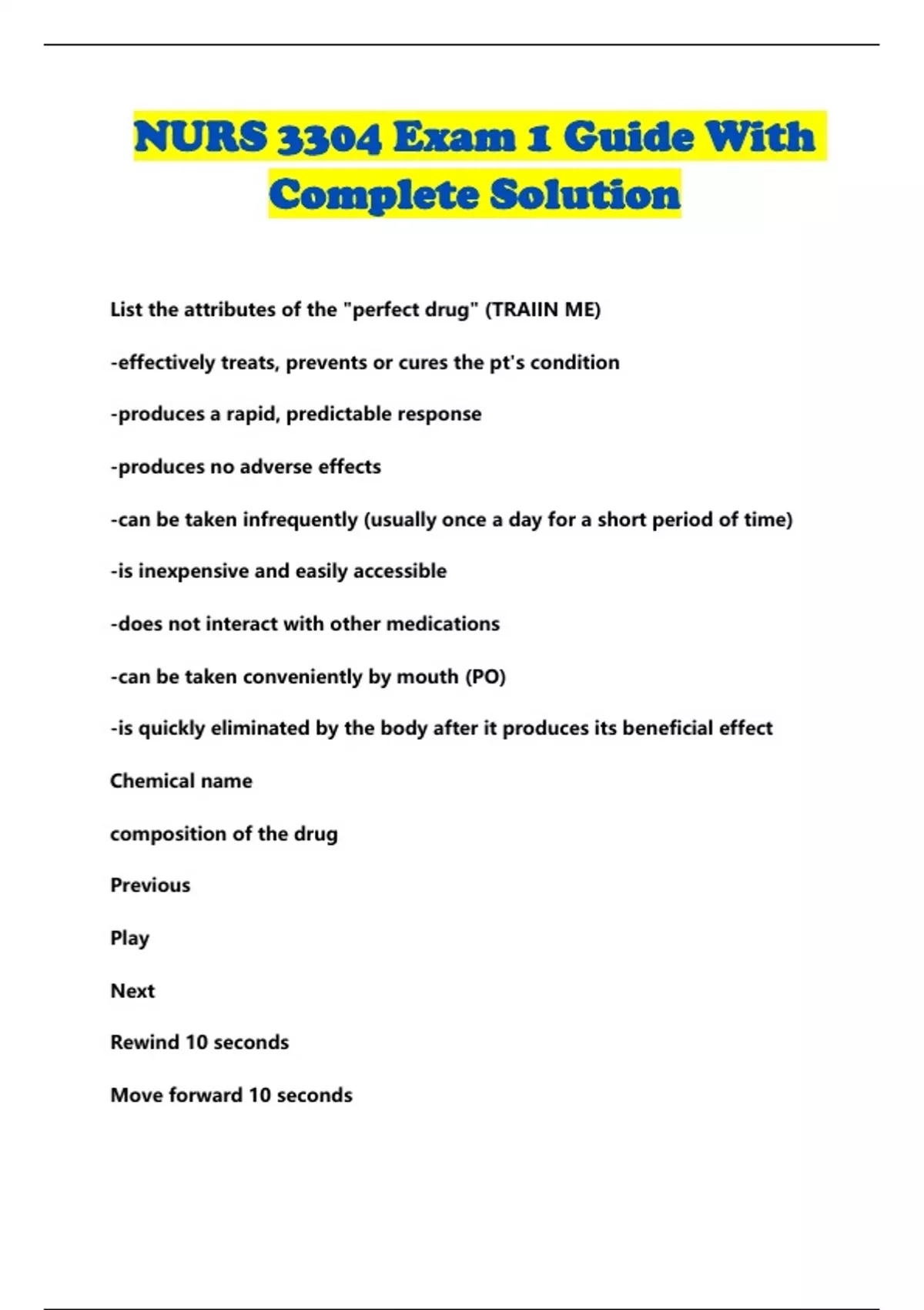 NURS 3304 FULL PACKAGE DEAL WITH COMPLETE SOLUTION