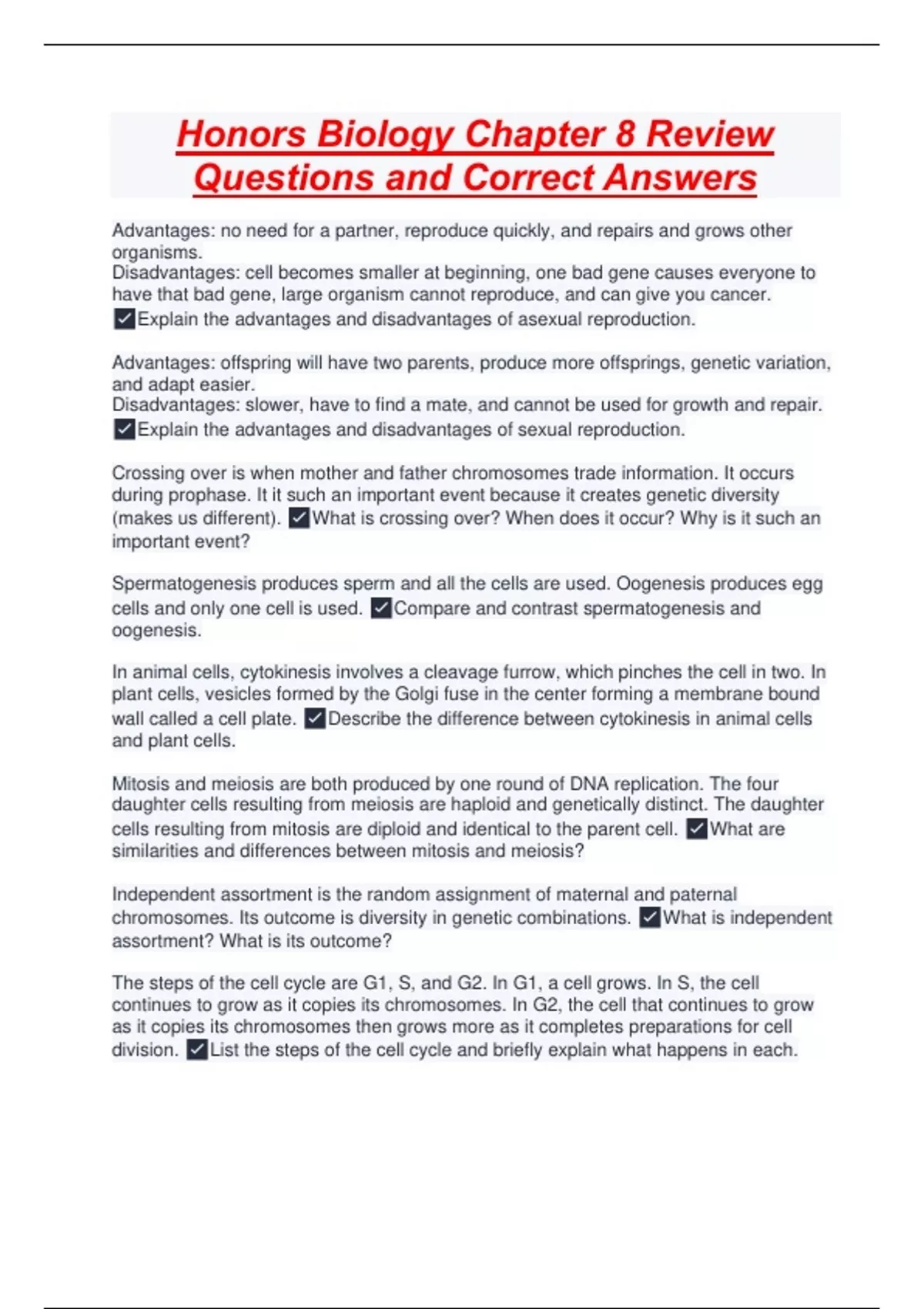 Honors Biology Q&A Bundle