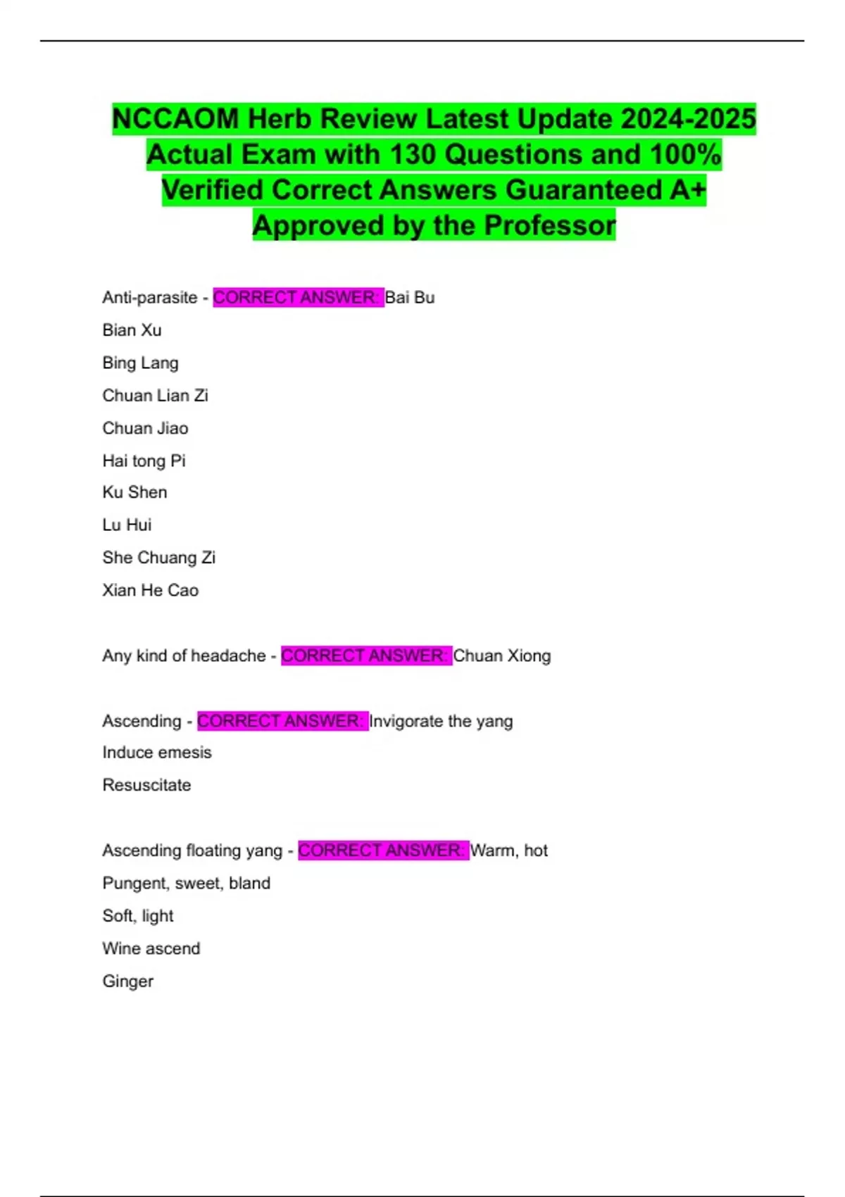 NCCAOM SINGLE HERBS BOARD EXAM-ALL Latest Update Actual Exam 2 versions