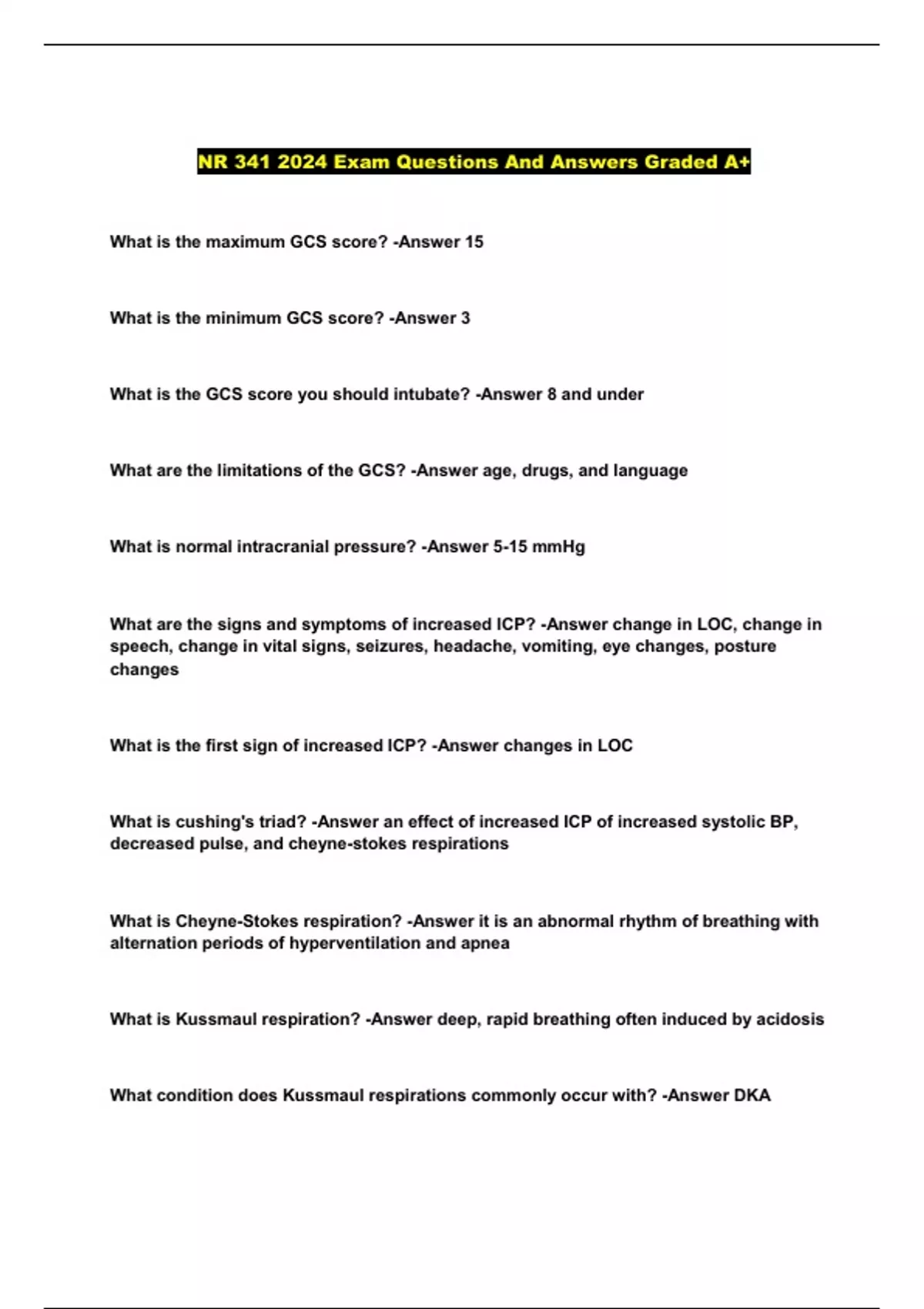 NR 341 Packaged Exams With Questions And Accurate Answers...