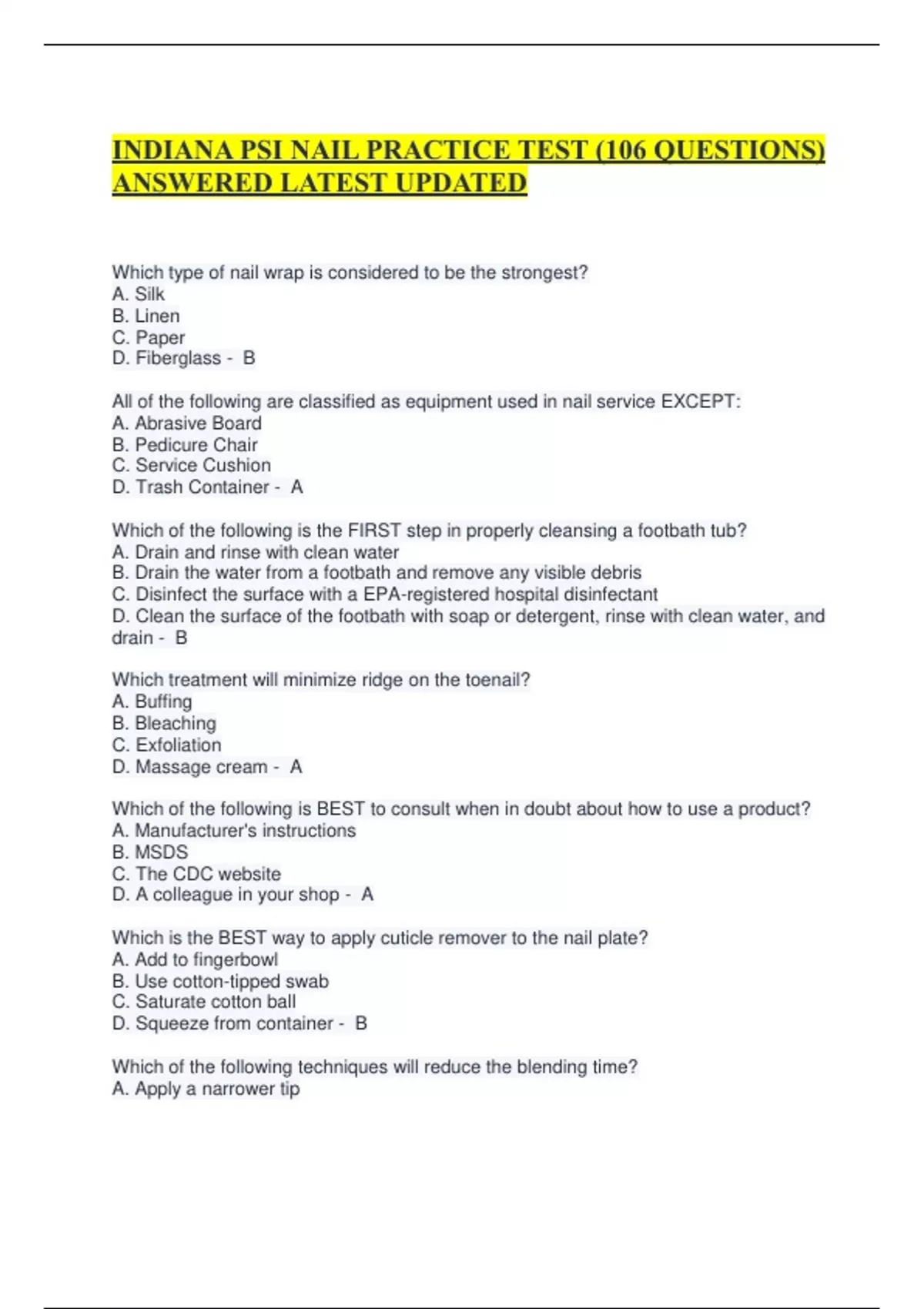 PACKAGE DEAL FOR >> INDIANA COSMETOLOGY PSI EXAM | VERIFIED ANSWERS 100% CORRECT.