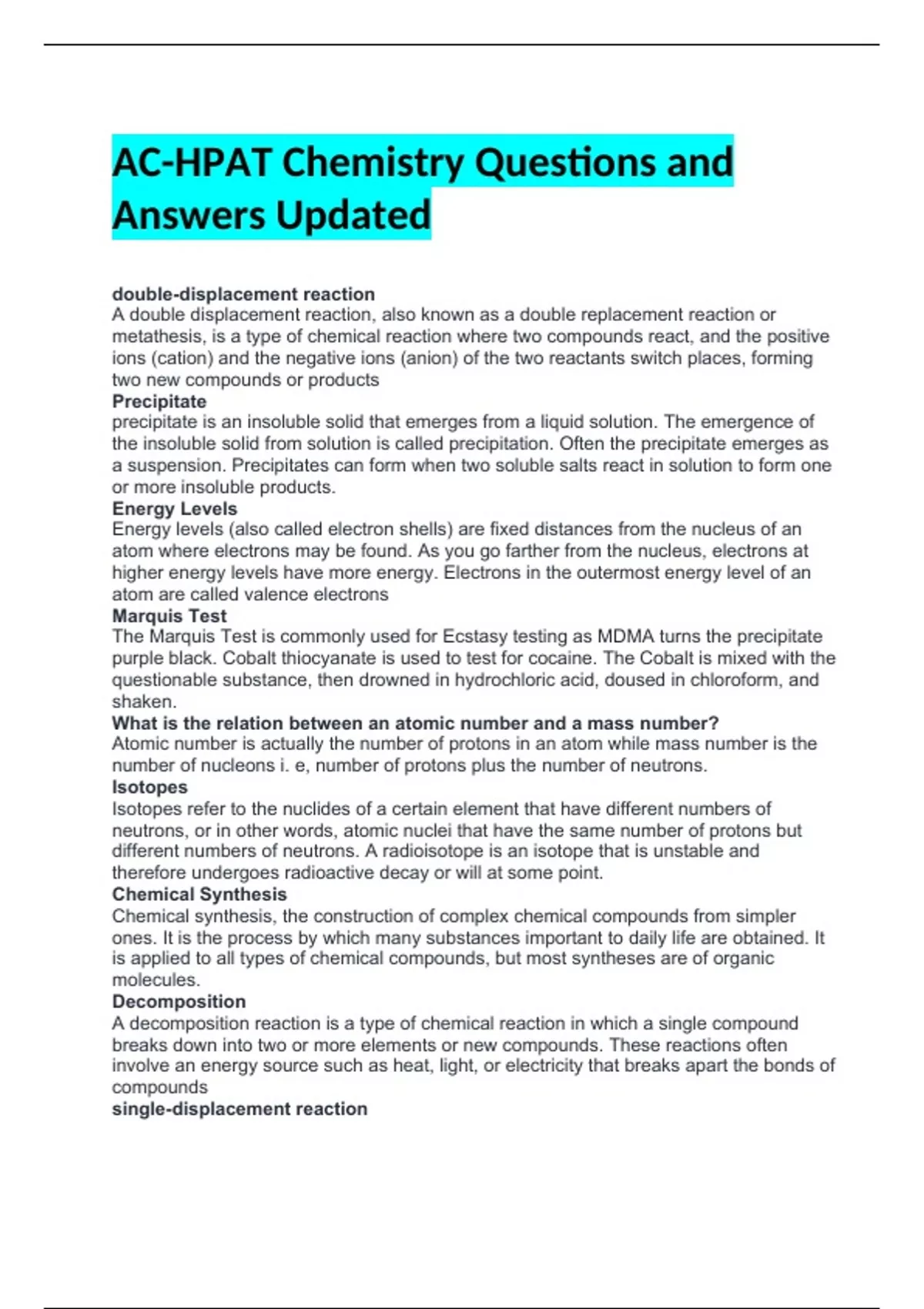 Bundled Test Bank For Chemistry All Chapters Covered LATEST UPDATE