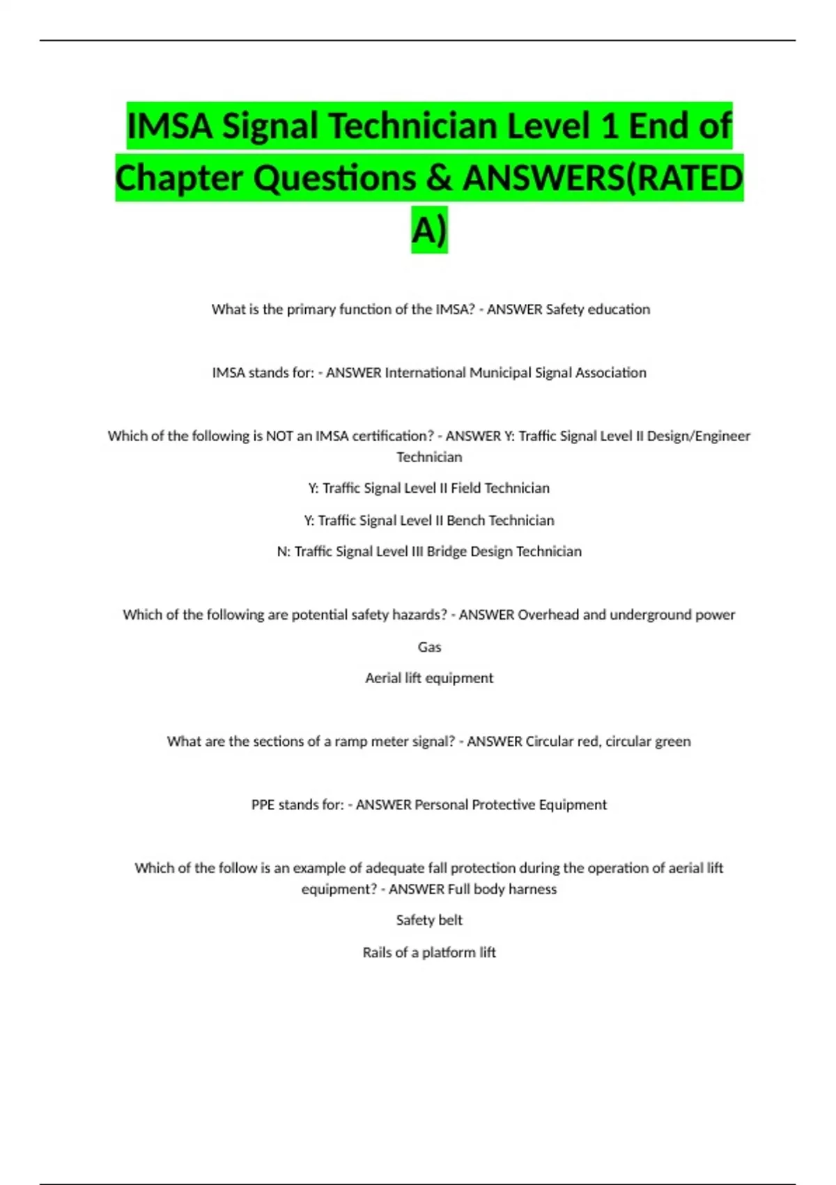 IMSA Traffic Signal Inspector Chapter 1 – Introduction 100% ACCURATE EXAM BUNIMSA Traffic Signal Inspector Chapter 1 – Introduction 100% ACCURATE EXAM BUNDLEIMSA Traffic Signal Inspector Chapter 1 – Introduction 100% ACCURATE EXAM BUNDLEIMSA Traffic Signal Inspector DLEIMSA Traffic Signal Inspector Chapter 1 – Introduction 100% ACCURATE EXAM BUNDLE