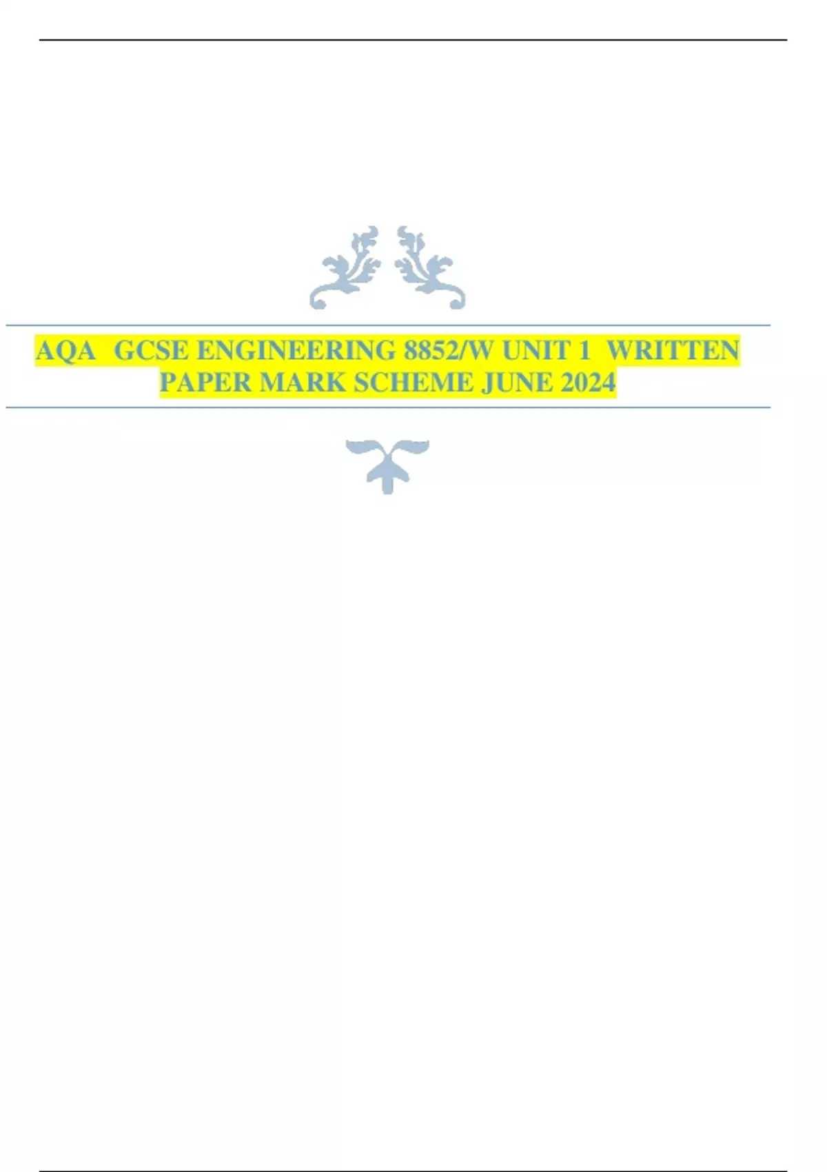 Bundle: AQA GCSE ENGINEERING UNIT 1 WRITTEN PAPER QP and MS JUNE 2024