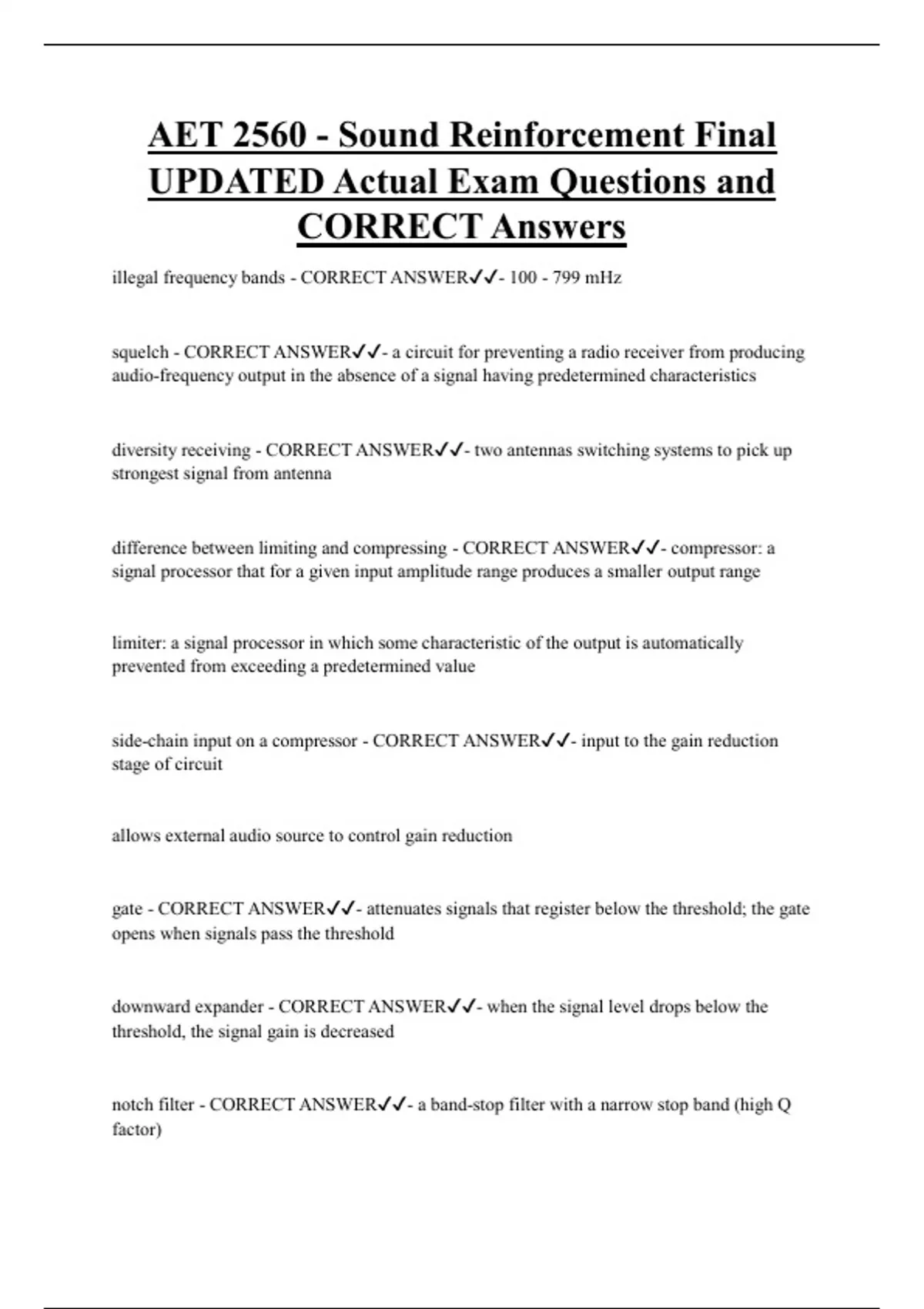 AET sound reinforcement Bundled Exam Questions and CORRECT Answers