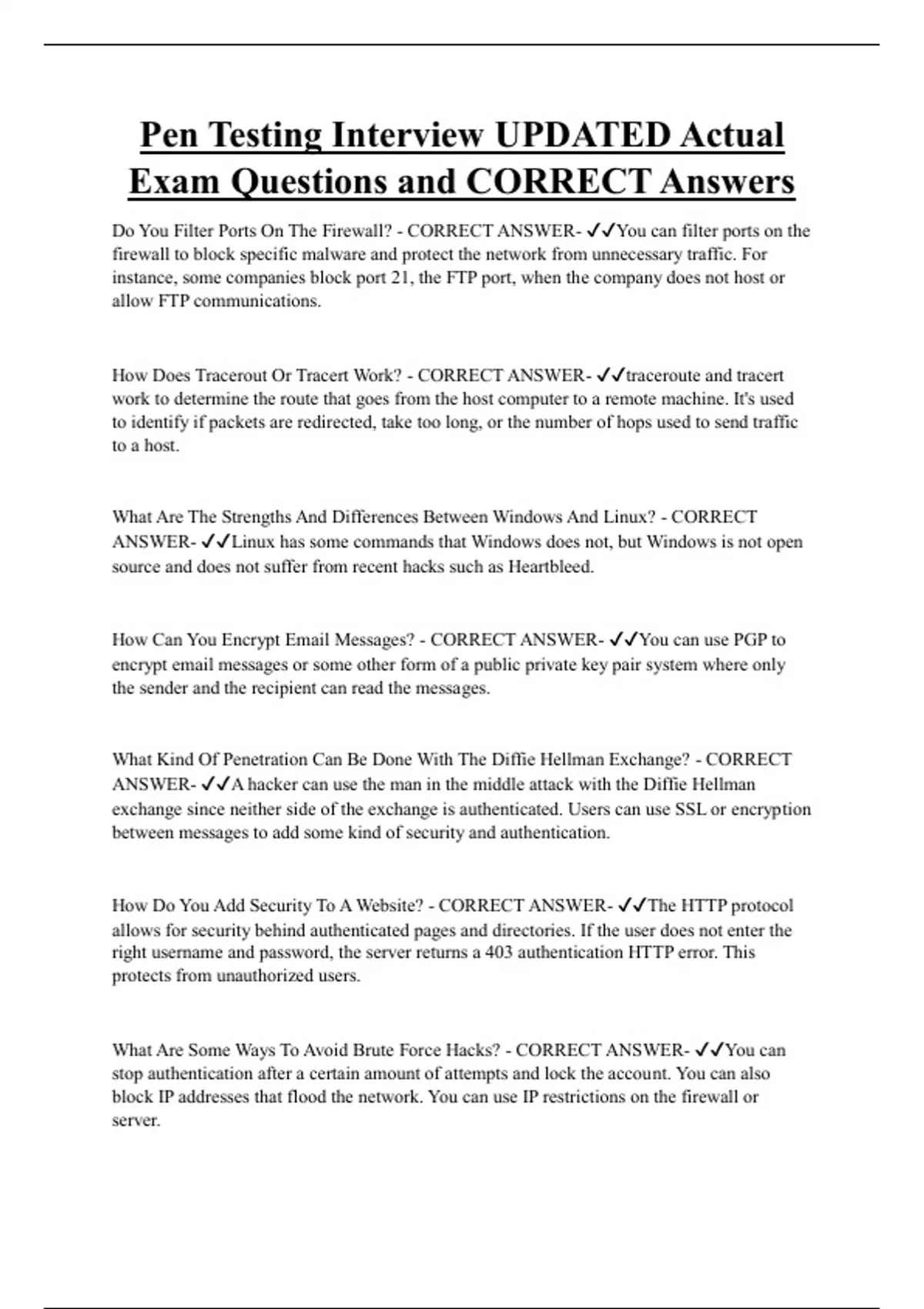 PEN Testing Bundled Exam Questions and CORRECT Answers
