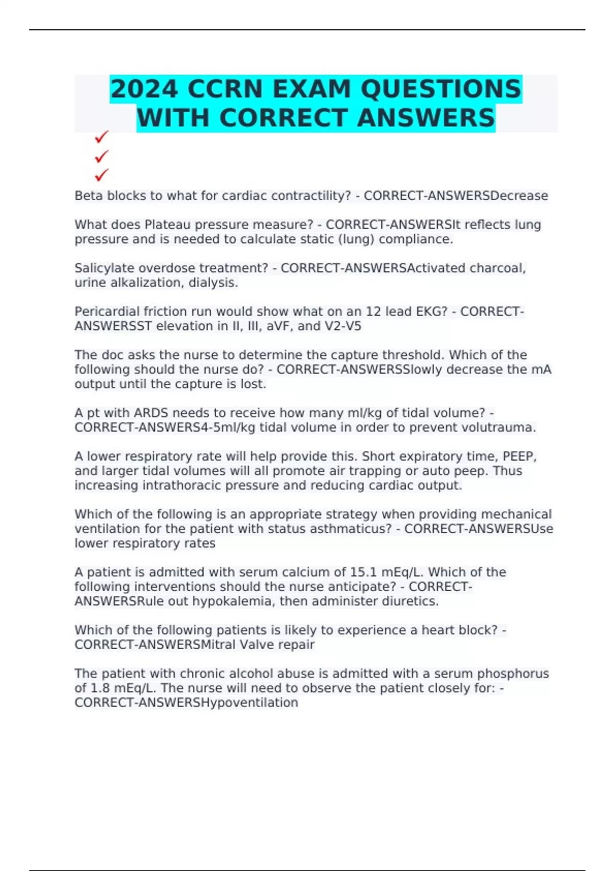 2024 BARRON'S CCRN EXAM WITH CORRECT ANSWERS 2024 CCRN EXAM QUESTIONS WITH CORRECT ANSWERS 2024 CCRN EXAM QUESTIONS WITH CORRECT ANSWERS 2024 CCRN EXAM WITH CORRECT ANSWERS 2024 CCRN PRACTICE EXAM QUESTIONS WITH CORRECT ANSWERS 2024 CCRN PRACTICE TEST 1 EXAM WITH CORRECT ANSWERS 2024 CCRN EXAM QUESTIONS WITH CORRECT ANSWERS 2024 CCRN PRACTIC