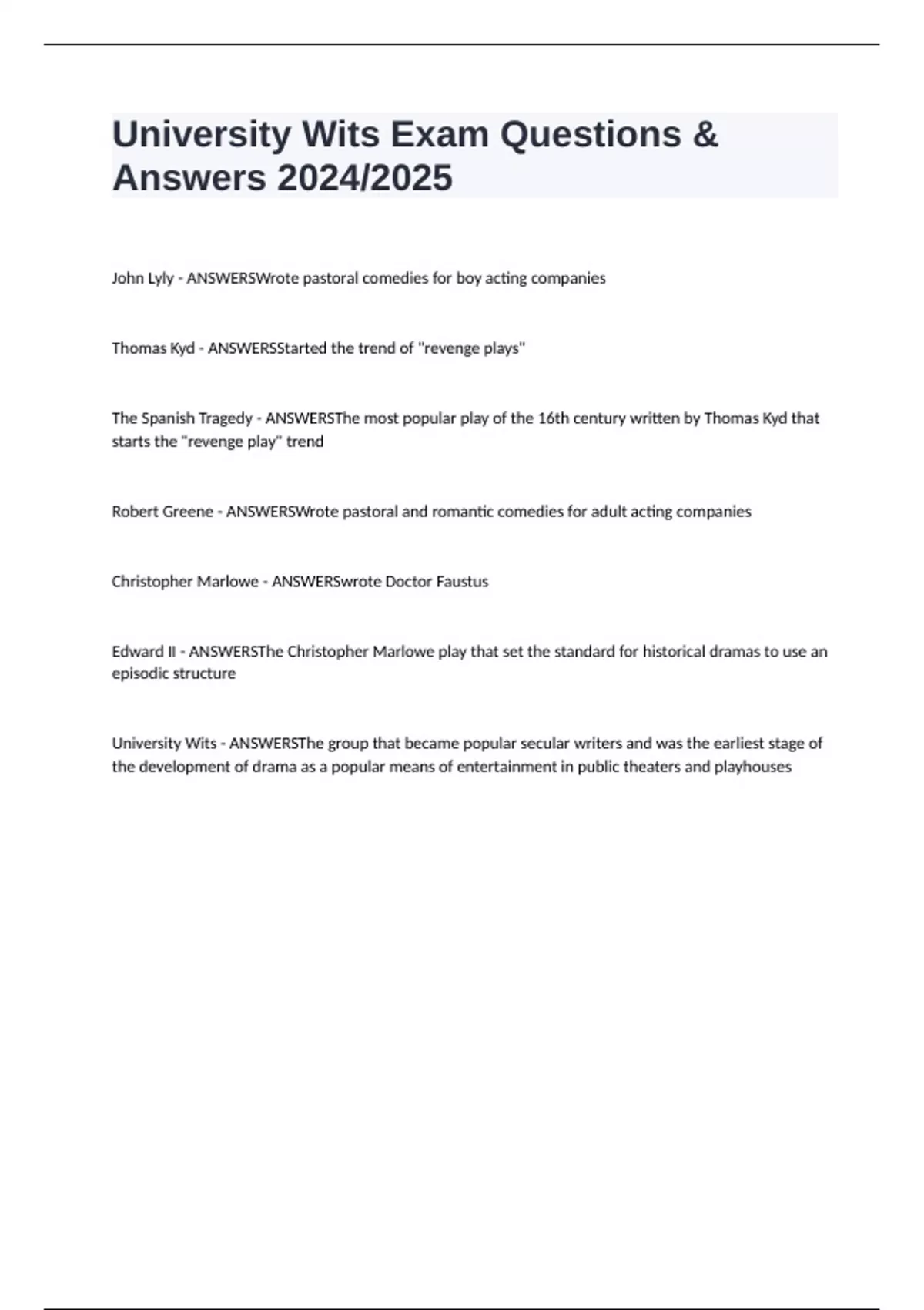 Wits Test Questions with 100% Correct Answers 2024/2025