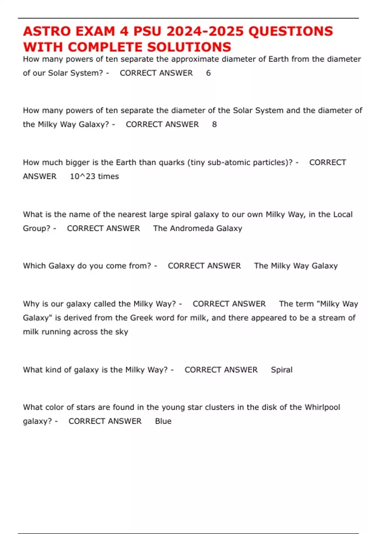 ASTRO 1 PSU EXAM QUESTIONS WITH COMPLETE SOLUTIONS