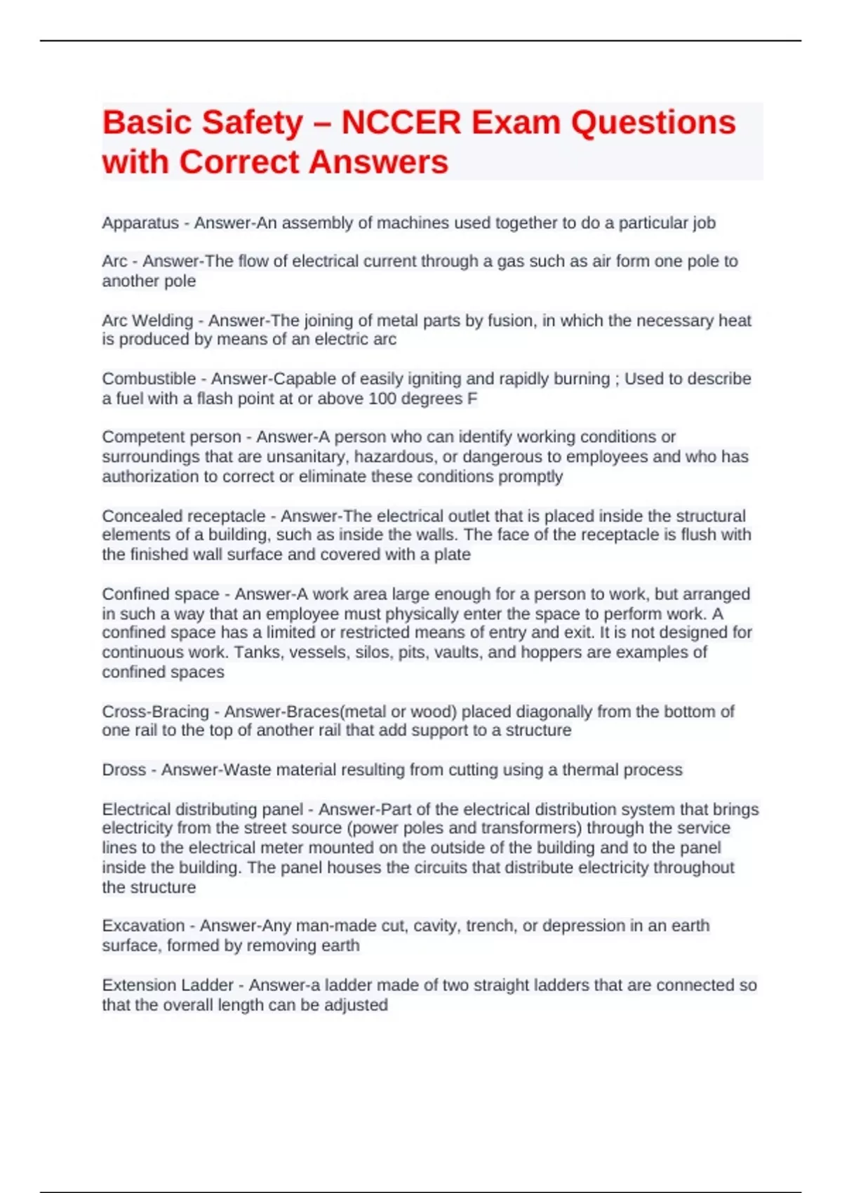 Exam (elaborations) Scaffolding user Exam Questions and Answers Exam (elaborations) Scaffolding Study section 1 Exam Questions and Answers Exam (elaborations) Scaffold Study Guide Exam Questions and Answers Exam (elaborations) Scaffold Pre-Test Exam Questions with Complete Solutions Exam (elaborations) Scaffold NCCER Exam Questions and Ans
