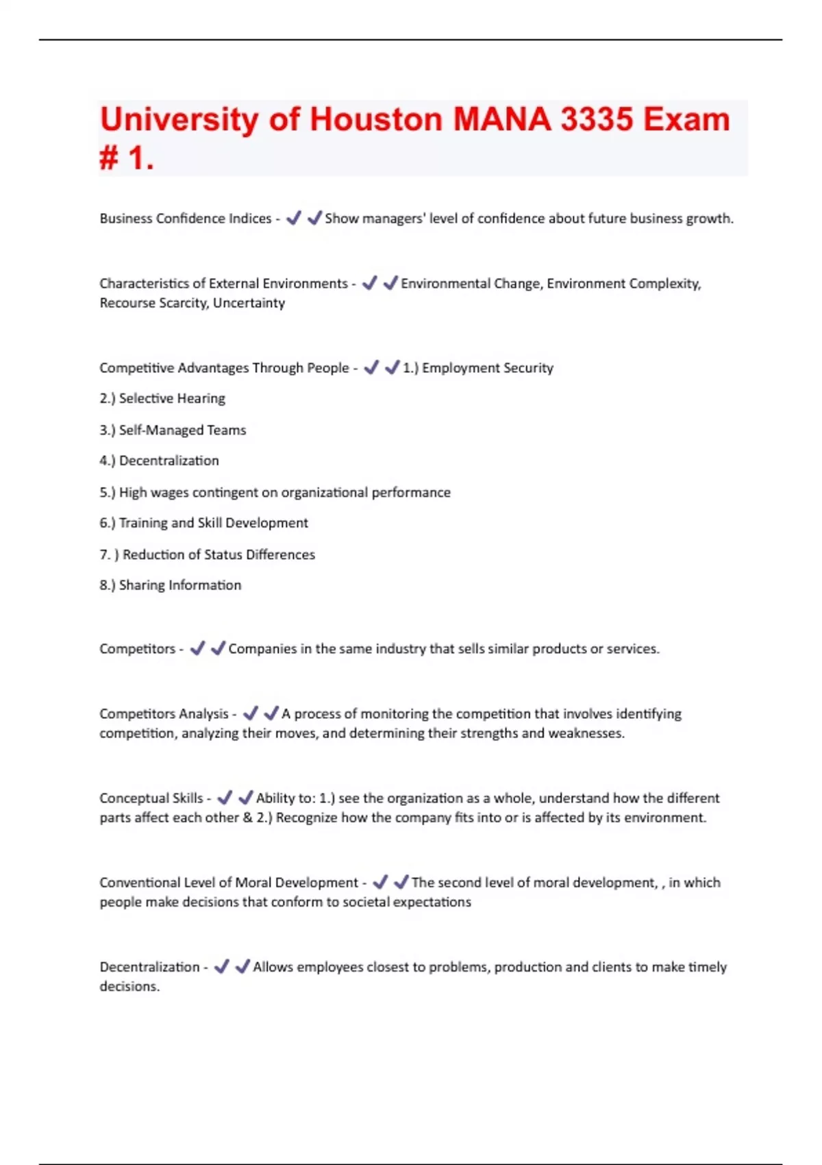 University of Houston MANA 3335 Exam 1 Questions And Answers Latest Updates