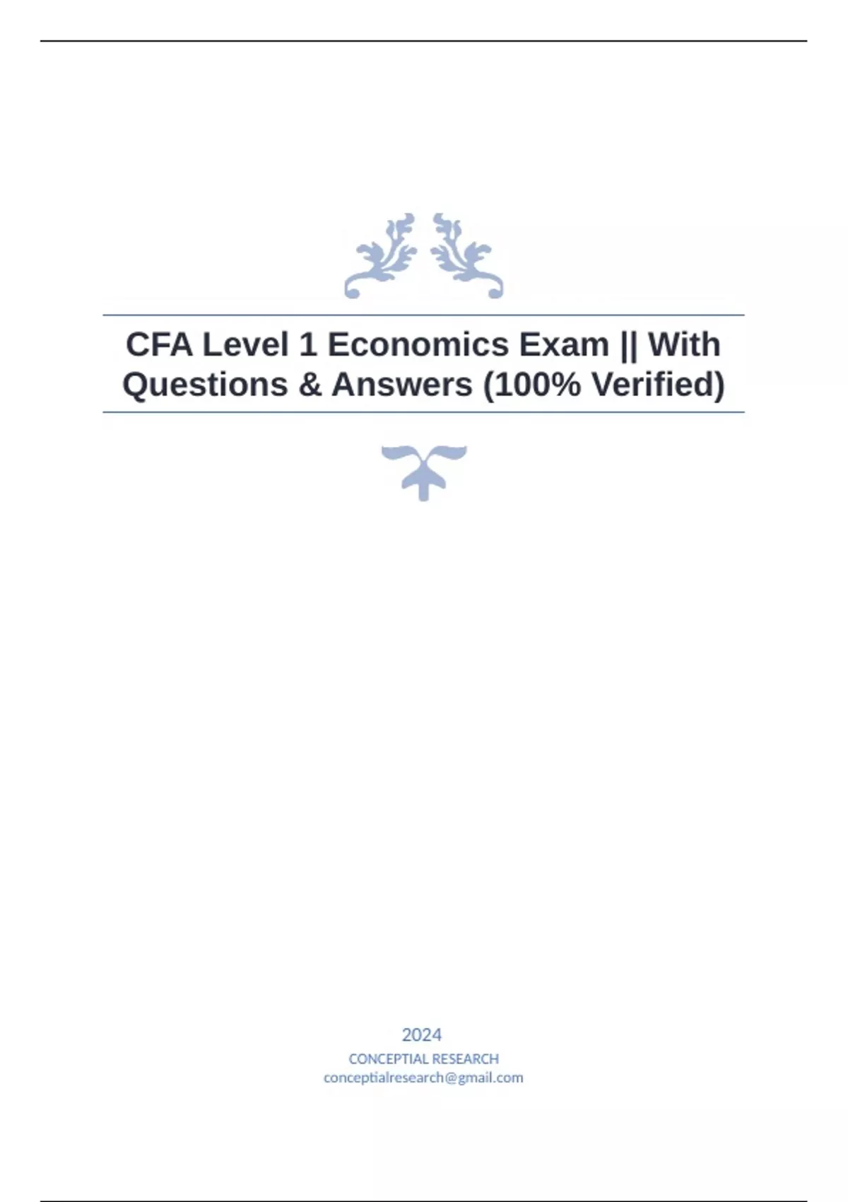 Chartered Financial Analyst (CFA) Level 1 Comprehensive Test Bank|| With Complete Questions & Answers (100% Accurate) || Guaranteed Pass Chartered Financial Analyst (CFA) Level 1 Comprehensive Test Bank|| With Complete Questions & Answers (100% Accurate) || Guaranteed Pass