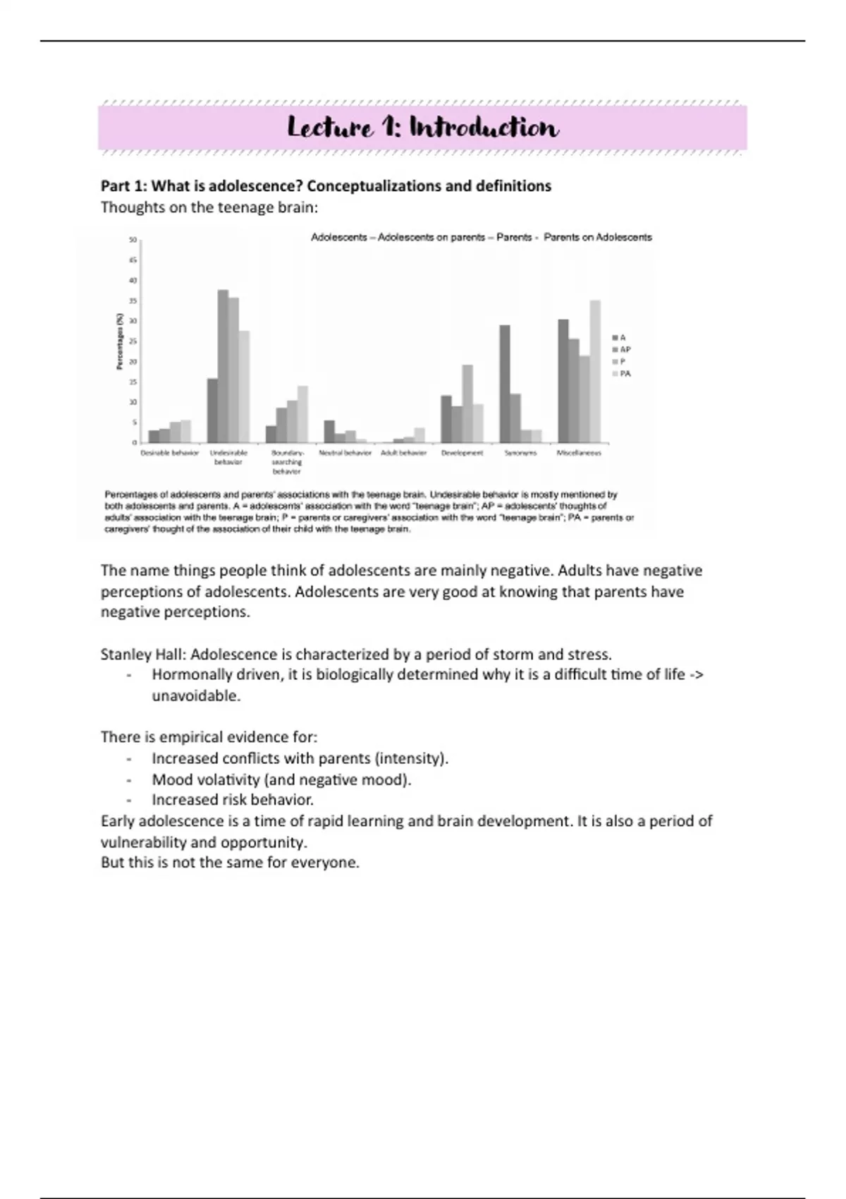 College aantekeningen van het vak Adolescent Development UU (deeltentamen 1)