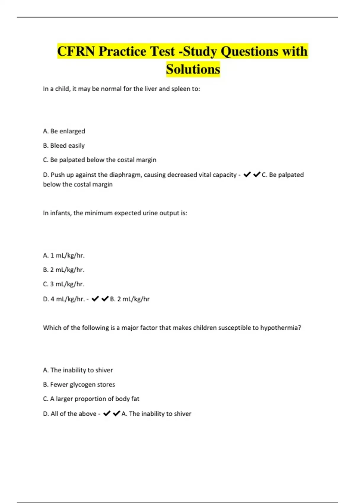 CFRN Practice Test -Study Questions with Solutions