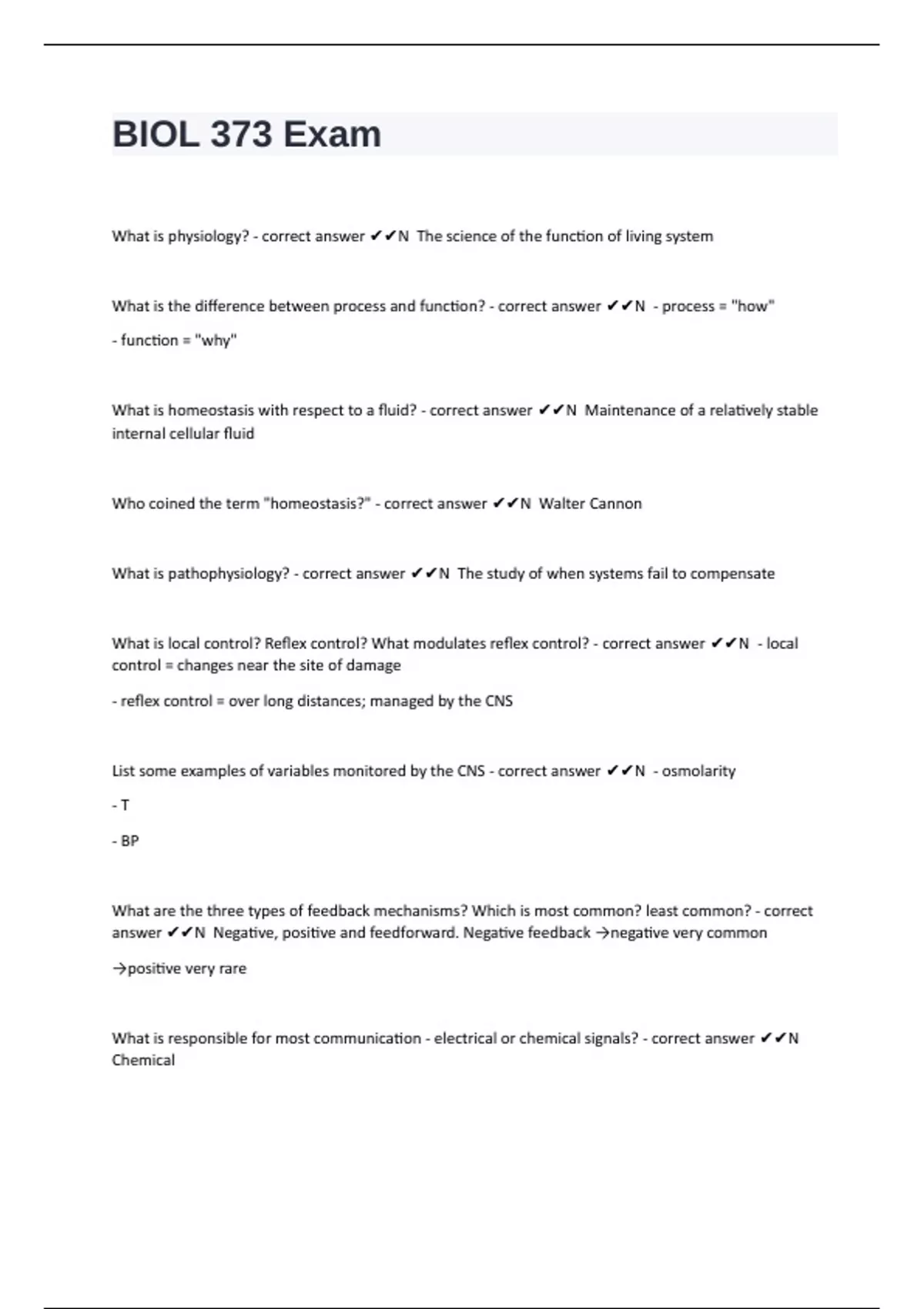1 Exam (elaborations) biol 373- unit 7 questions with verified solutions 2 Exam (elaborations) BIOL 373 - Unit 1, 2 & 3 questions well answered 3 Exam (elaborations) BIO 373 PART AFTER MIDTERM 2 -UW questions well answered 4 Exam (elaborations) BIO 373 - Exam 3 questions with verified solutions 5 Exam (elaborations) BIOL 373L STUDY SET question