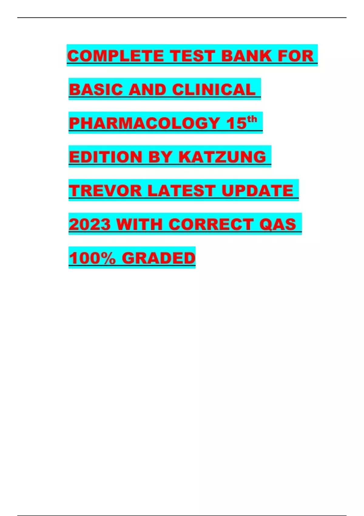 ATI PN PHARMACOLOGY PROCTORED/ATI PN PHARMACOLOGY PROCTORED EXAM 2023 /ATI RN PHARMACOLOGY FINAL EXAM UPDATE/Test bank for basic and clinical pharmacology 15th edition katzung trevor/TEST BANK FOR CLAYTON’S BASIC PHARMACOLOGY FOR NURSE’S 19TH EDITION BY M
